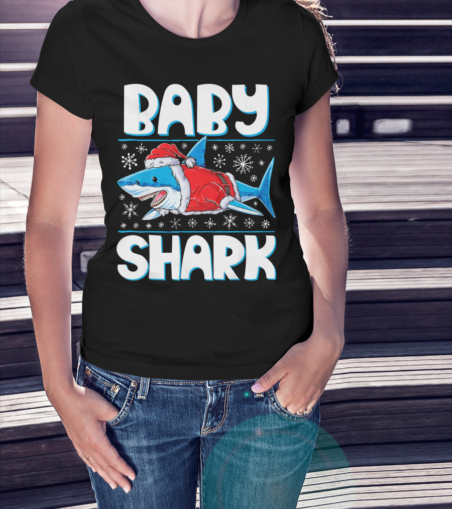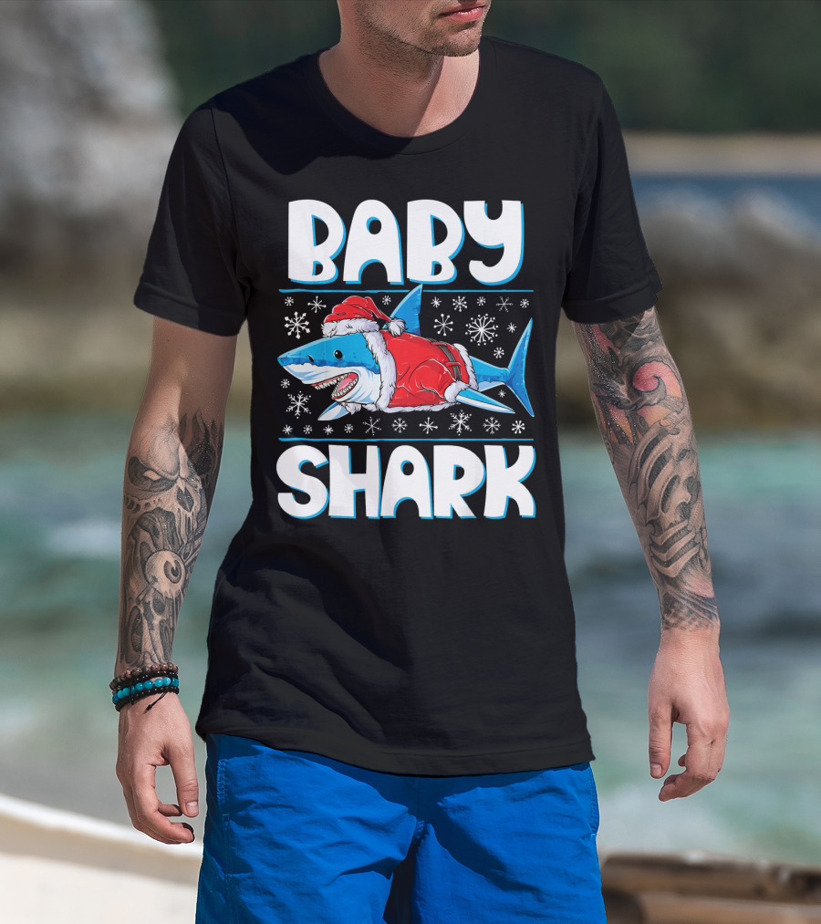 Baby Shark Santa Christmas Snowflakes T-Shirt