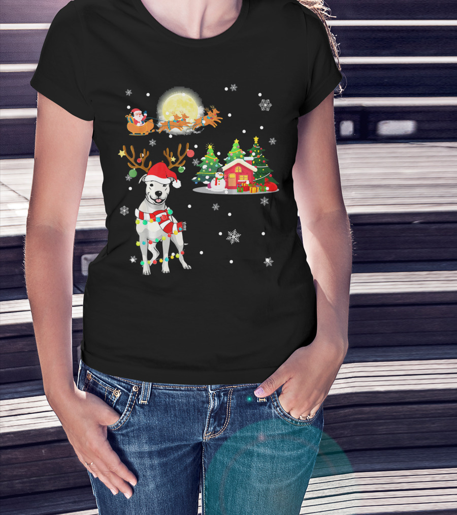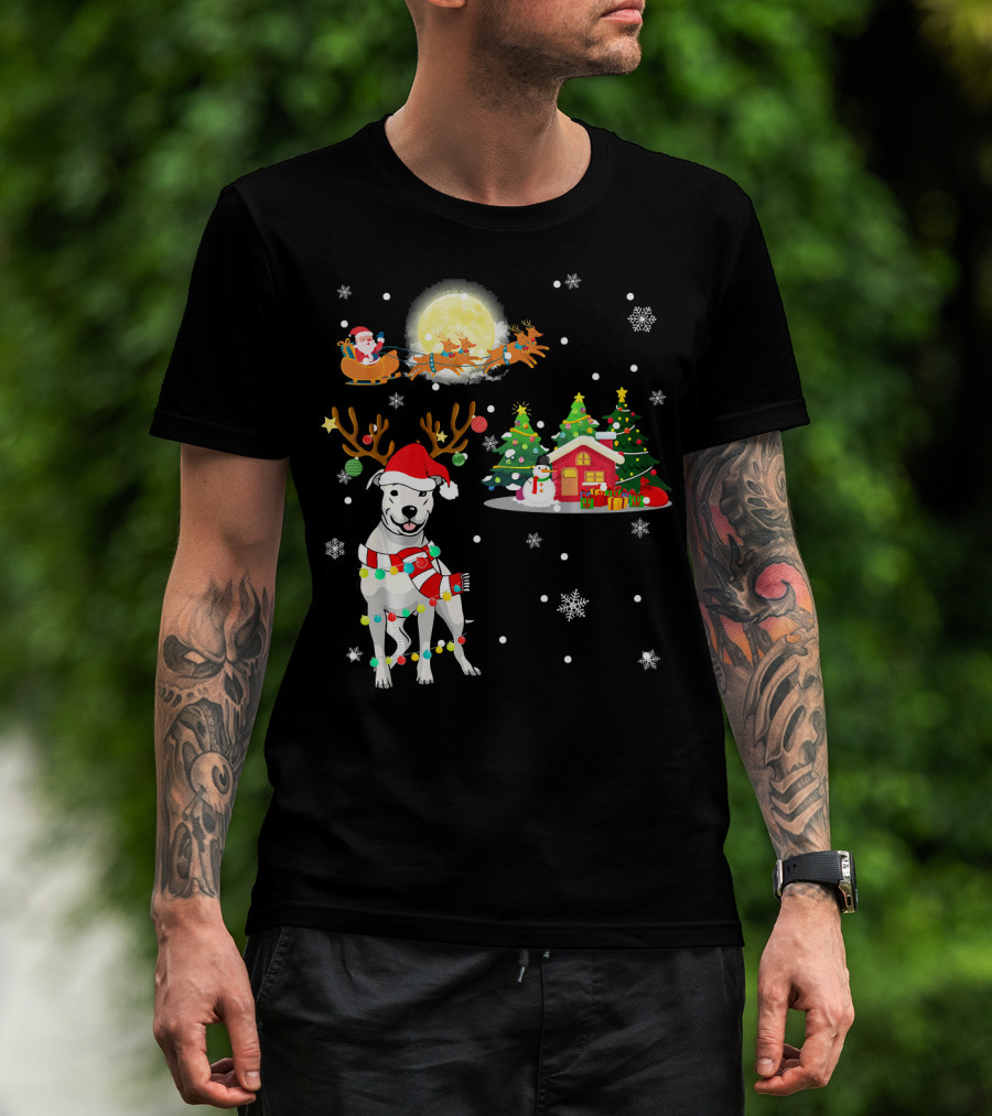 Santa's Sleigh And Festive Dogo Argentino Christmas Wonderland T-Shirt