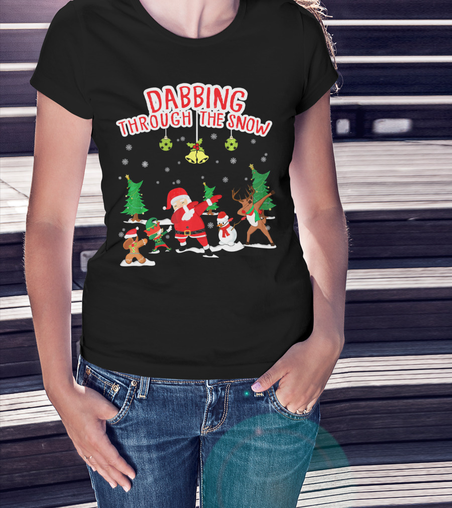 Dabbing Through The Snow Santa Reindeer Gingerbread Snowman Christmas Trees T-Shirt