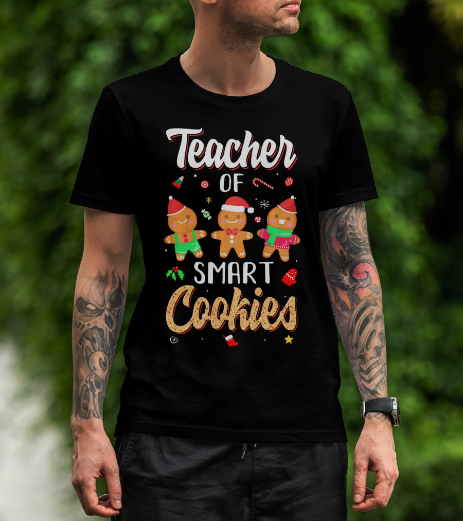 Teacher Of Smart Cookies Christmas Gingerbread Fun T-Shirt