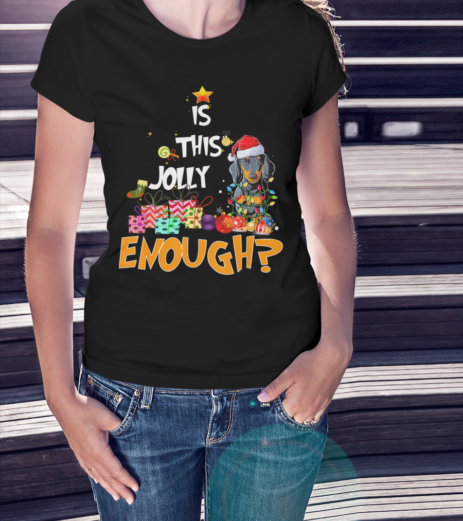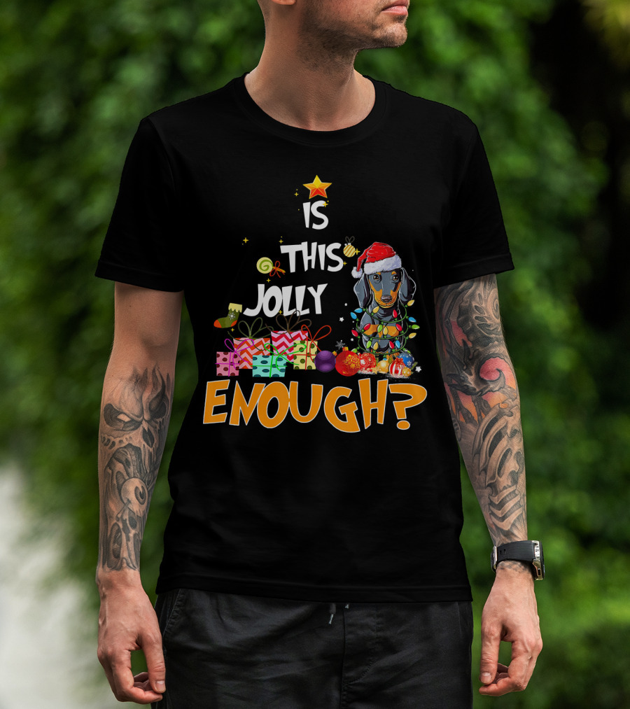 Is This Jolly Enough Dachshund Christmas Lights Santa Hat Gifts T-Shirt