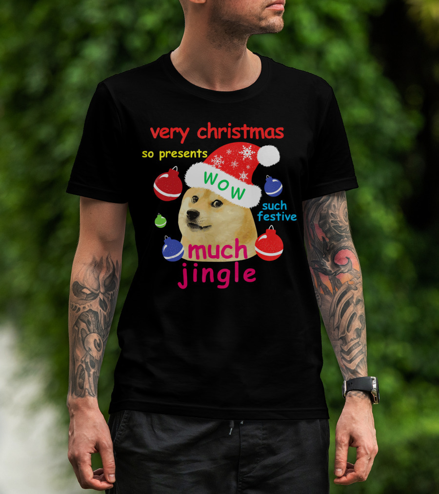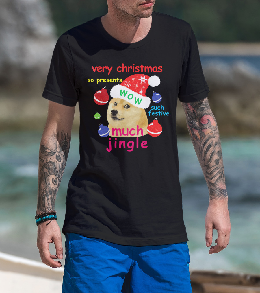 Very Christmas So Presents Wow Much Jingle Such Festive Doge Santa T-Shirt