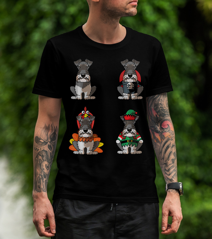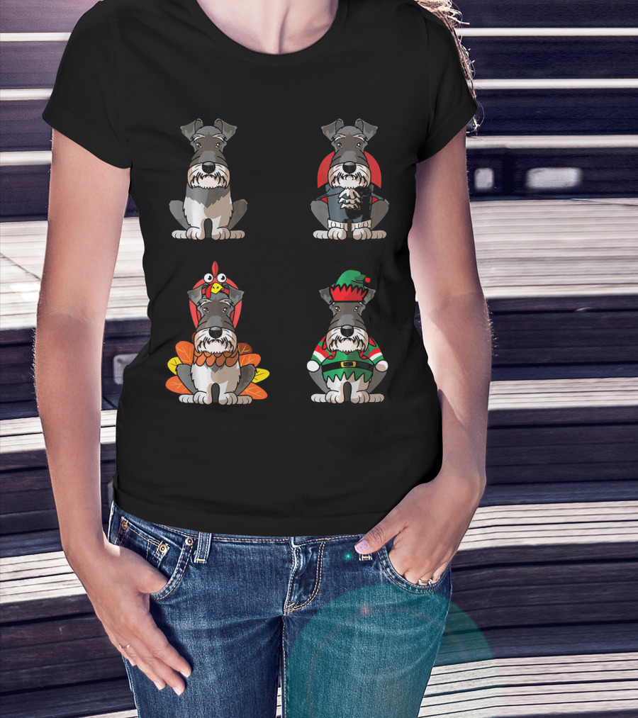 Miniature Schnauzer Seasons Halloween Thanksgiving Christmas Outfits T-Shirt