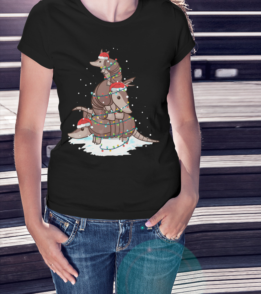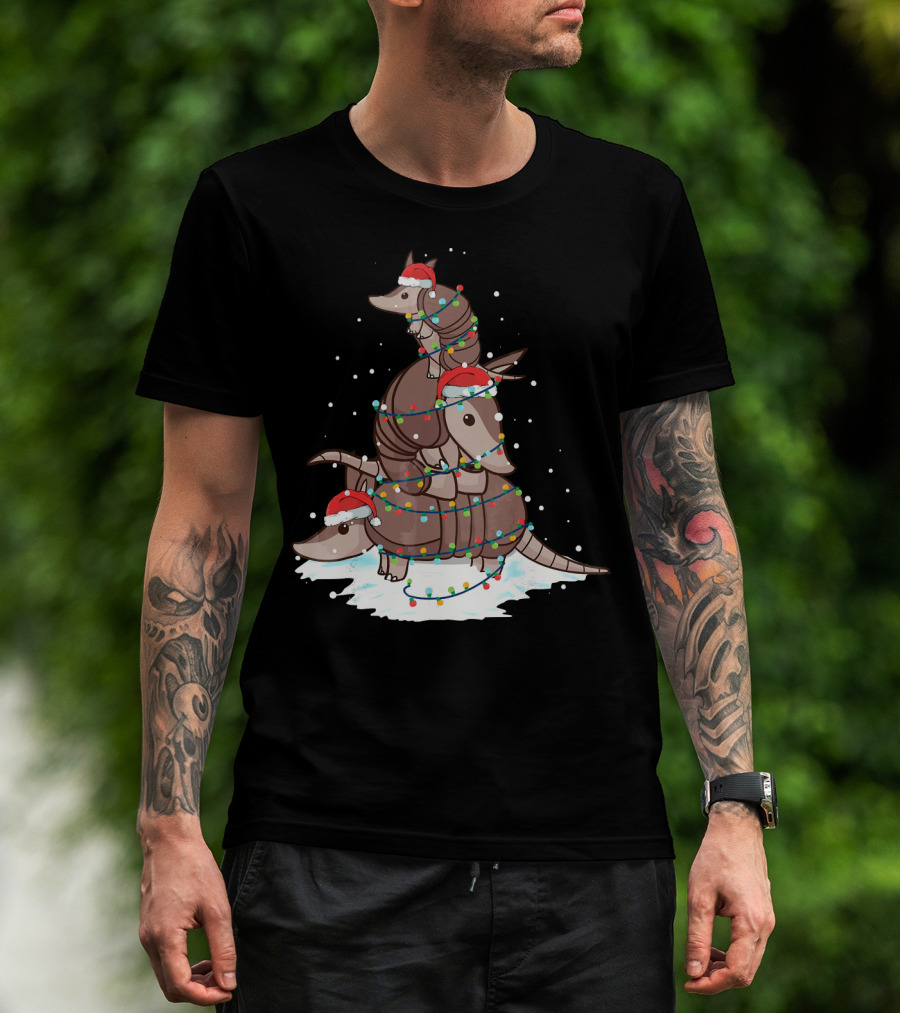 Armadillo Santa Christmas Light Tree Stack T-Shirt