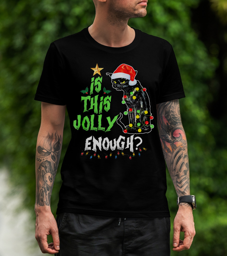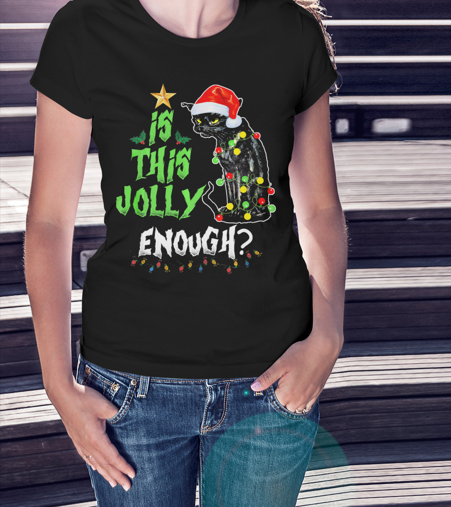 Is This Jolly Enough Christmas Cat With Lights And Santa Hat T-Shirt