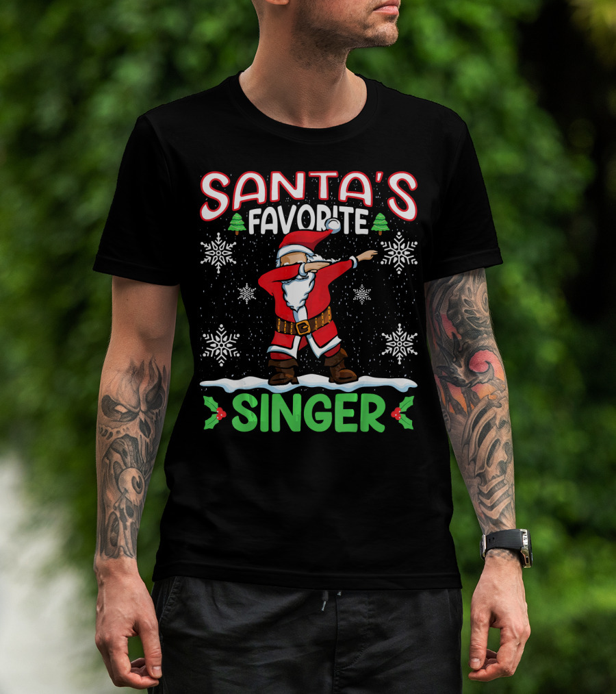 The Santa's Favorite Singer Dab Christmas Snowflakes T-shirt is designed for everyday wear and a consistent fit. Fabric is pre-shrunk ring-spun cotton with durable stitching. See the size chart below for exact measurements.