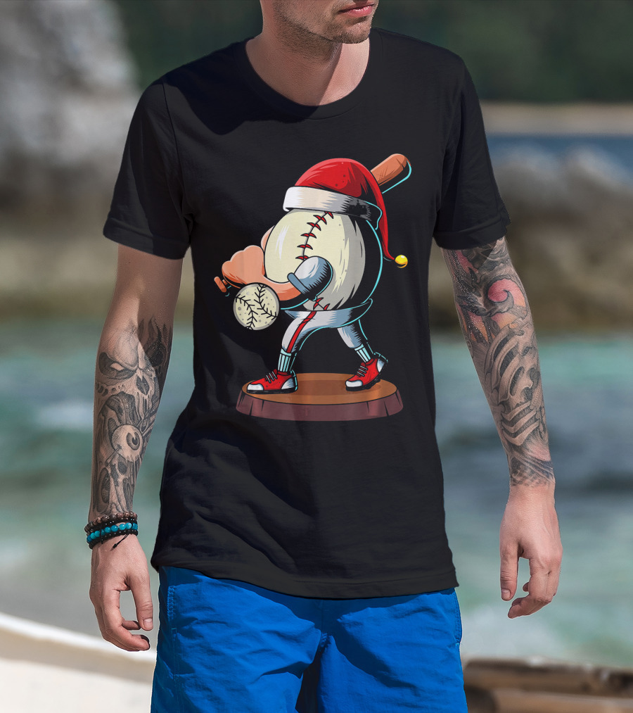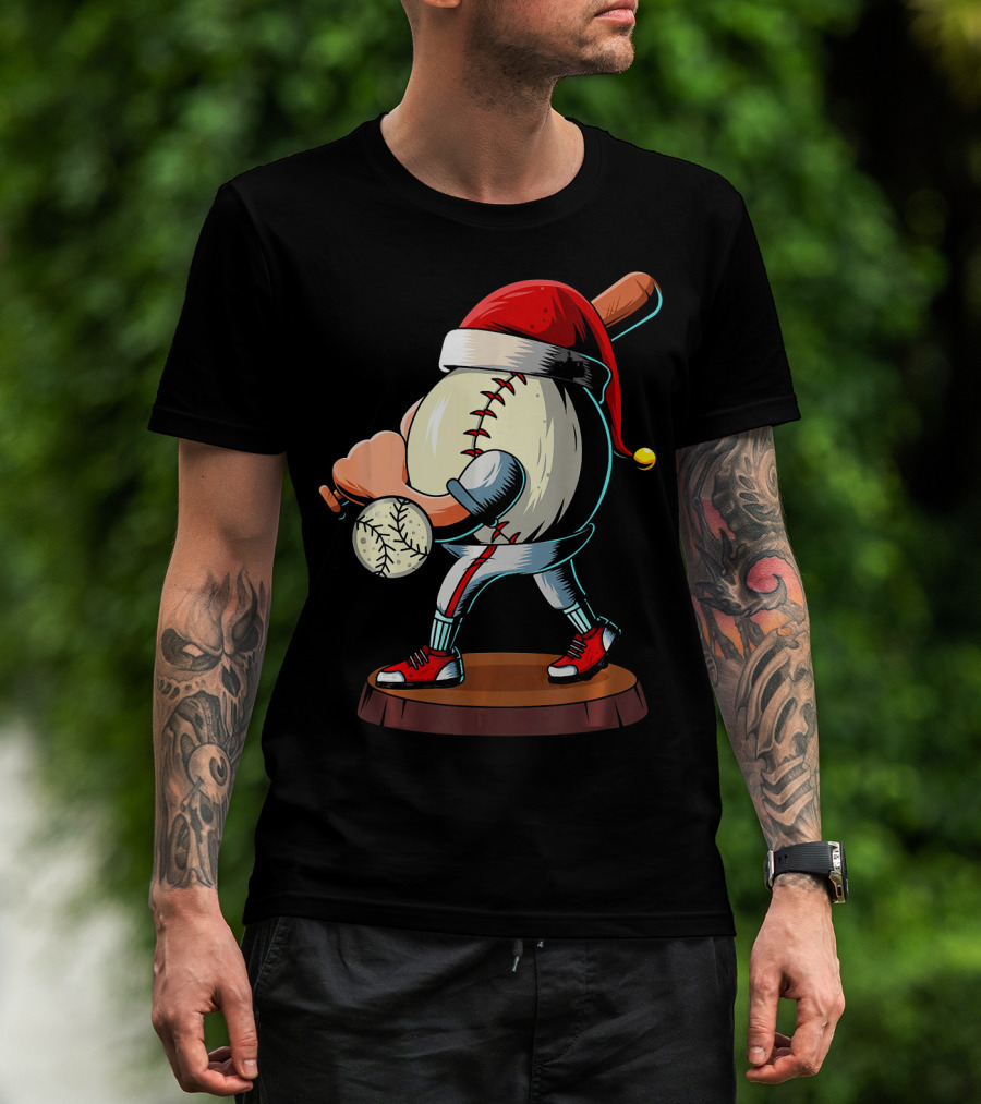 Christmas Baseball Batter Santa With Red Shoes And Bat T-Shirt