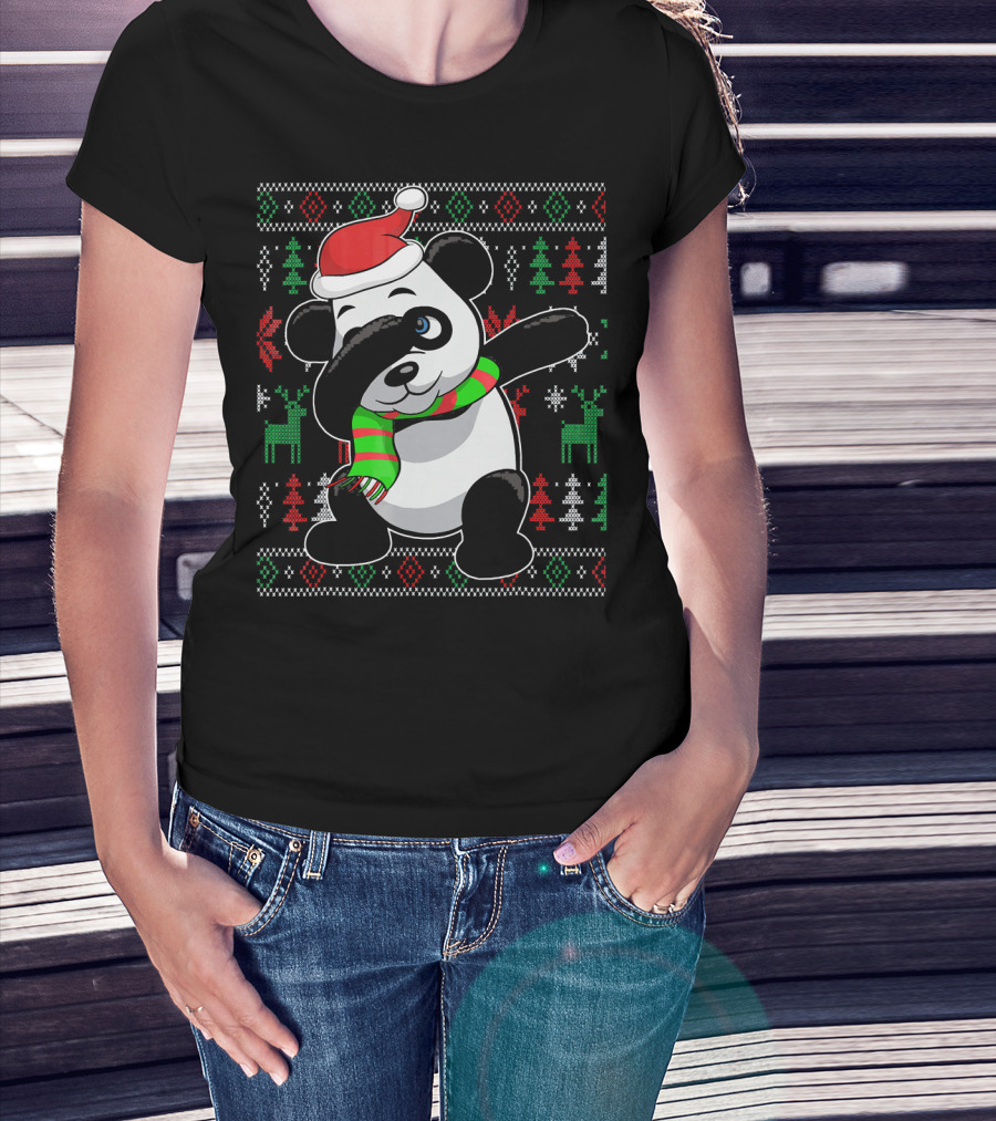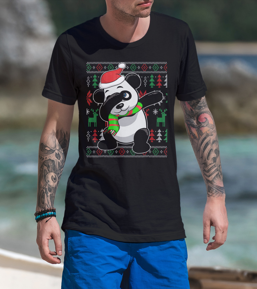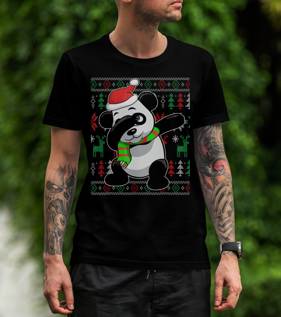 Ugly Christmas Sweater With Dabbing Santa Panda And Festive T-Shirt