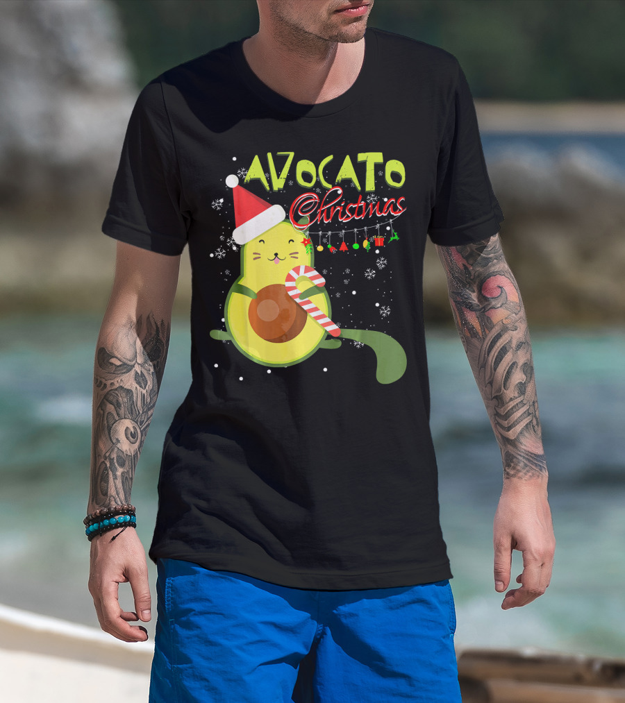 Avocato Christmas Funny Cute Cat Avocado Vegan T-Shirt