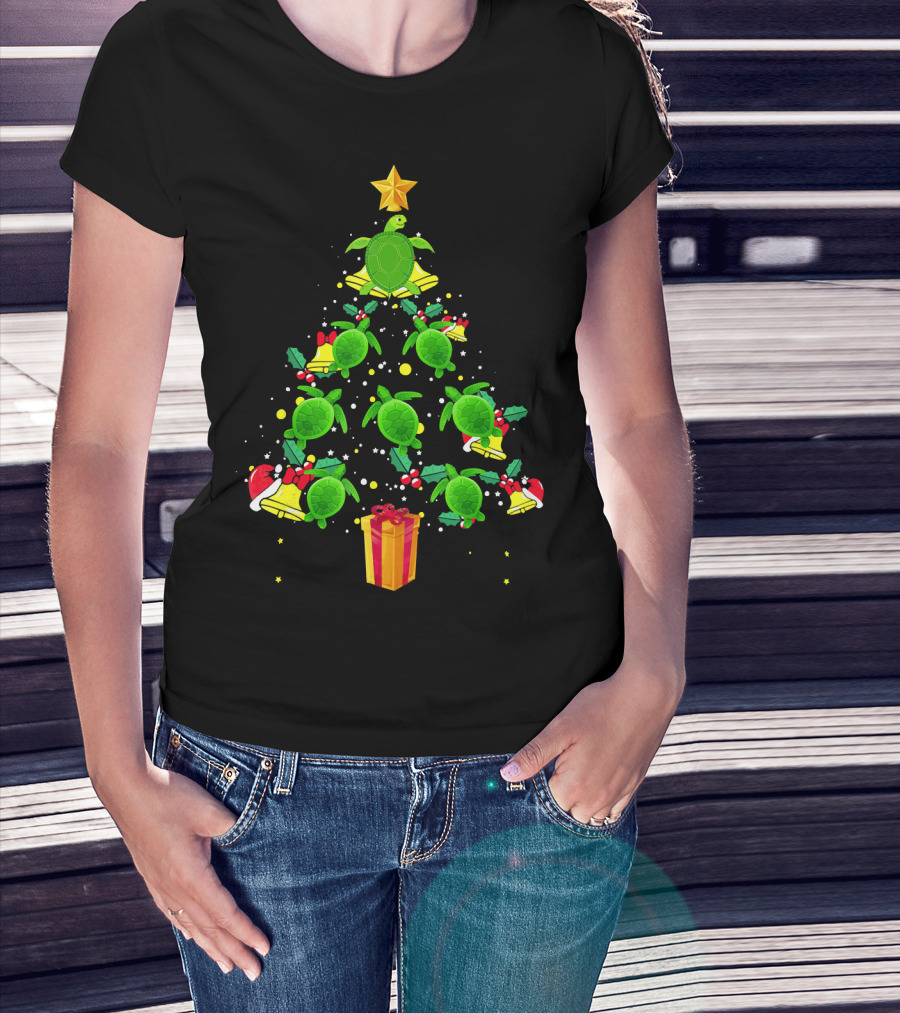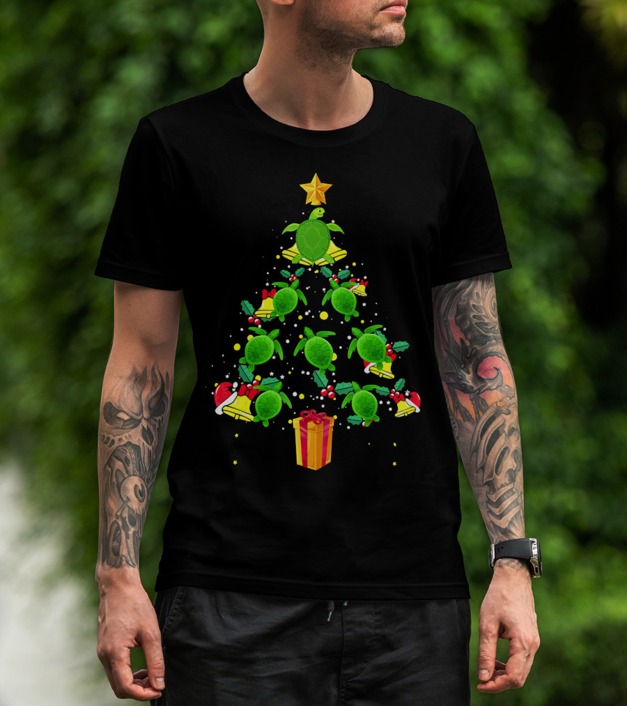 Sea Turtle Christmas Tree With Star Hat And Gift Box T-Shirt