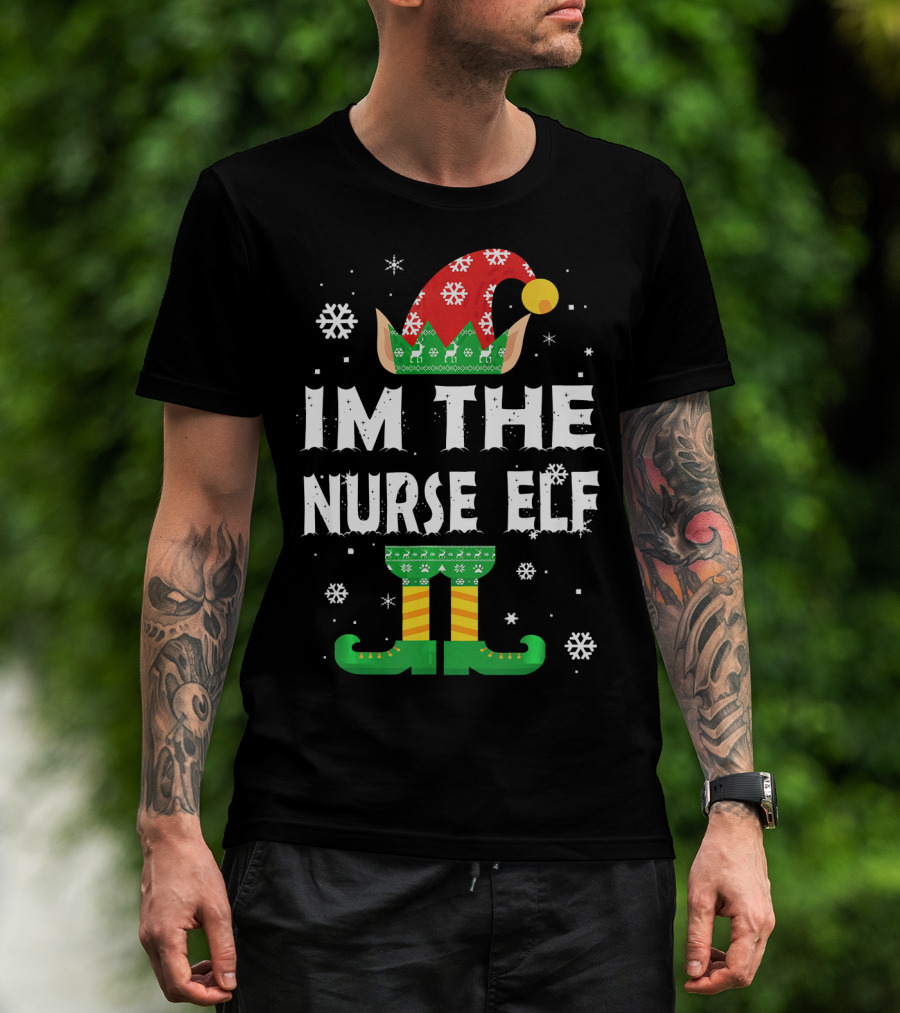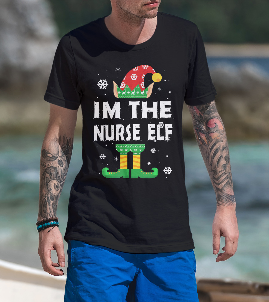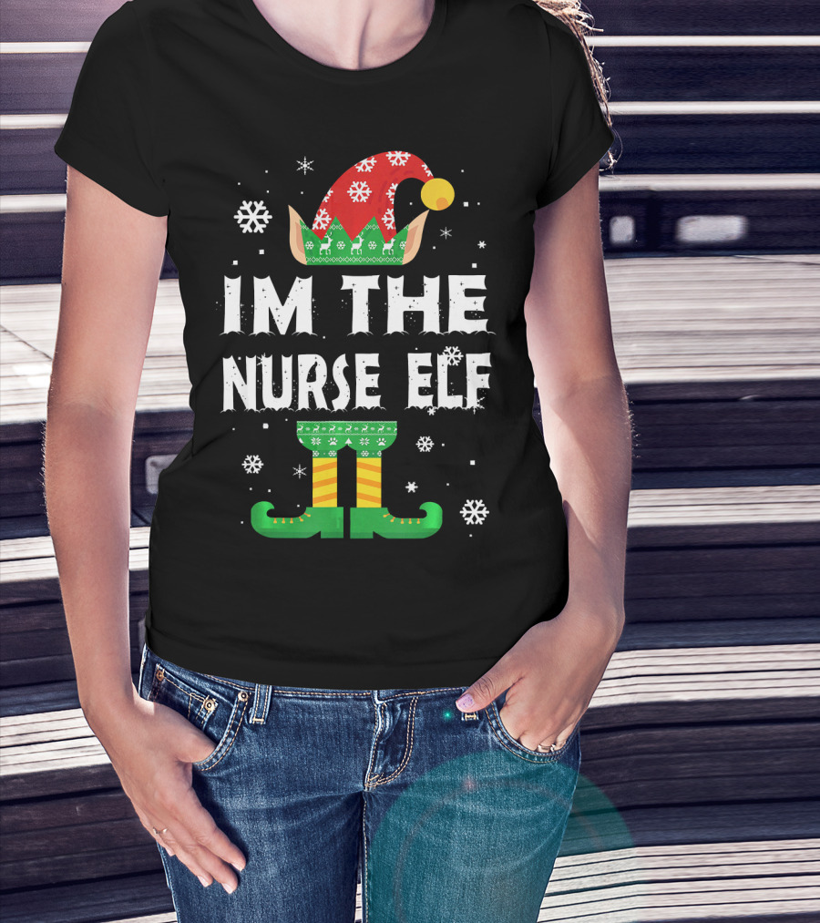 Im The Nurse Elf Matching Family Group Christmas Holiday Snowflakes T-Shirt