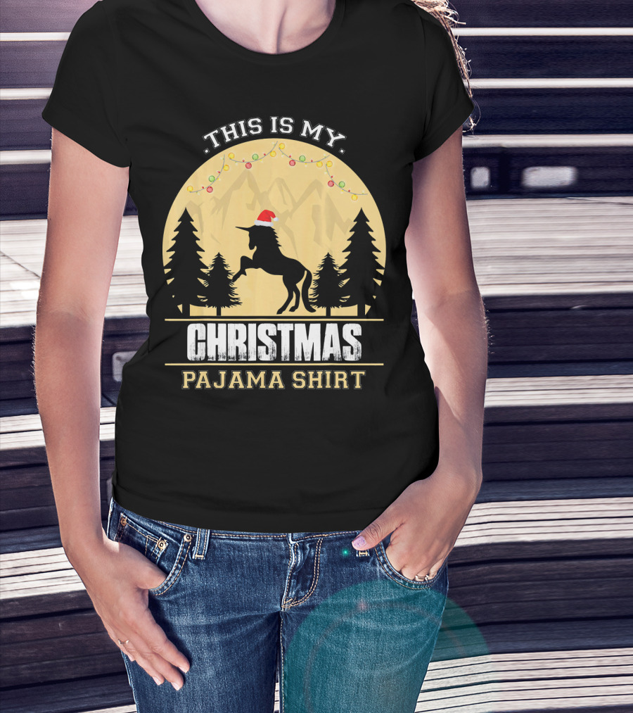 This Is My Christmas Pajama Shirt Santa Unicorn T-Shirt