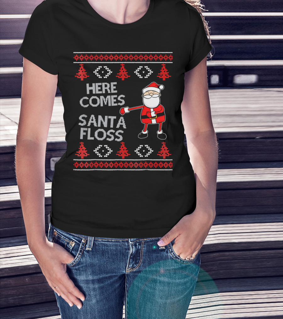 Here Comes Santa Floss Flossing Santa Claus T-Shirt