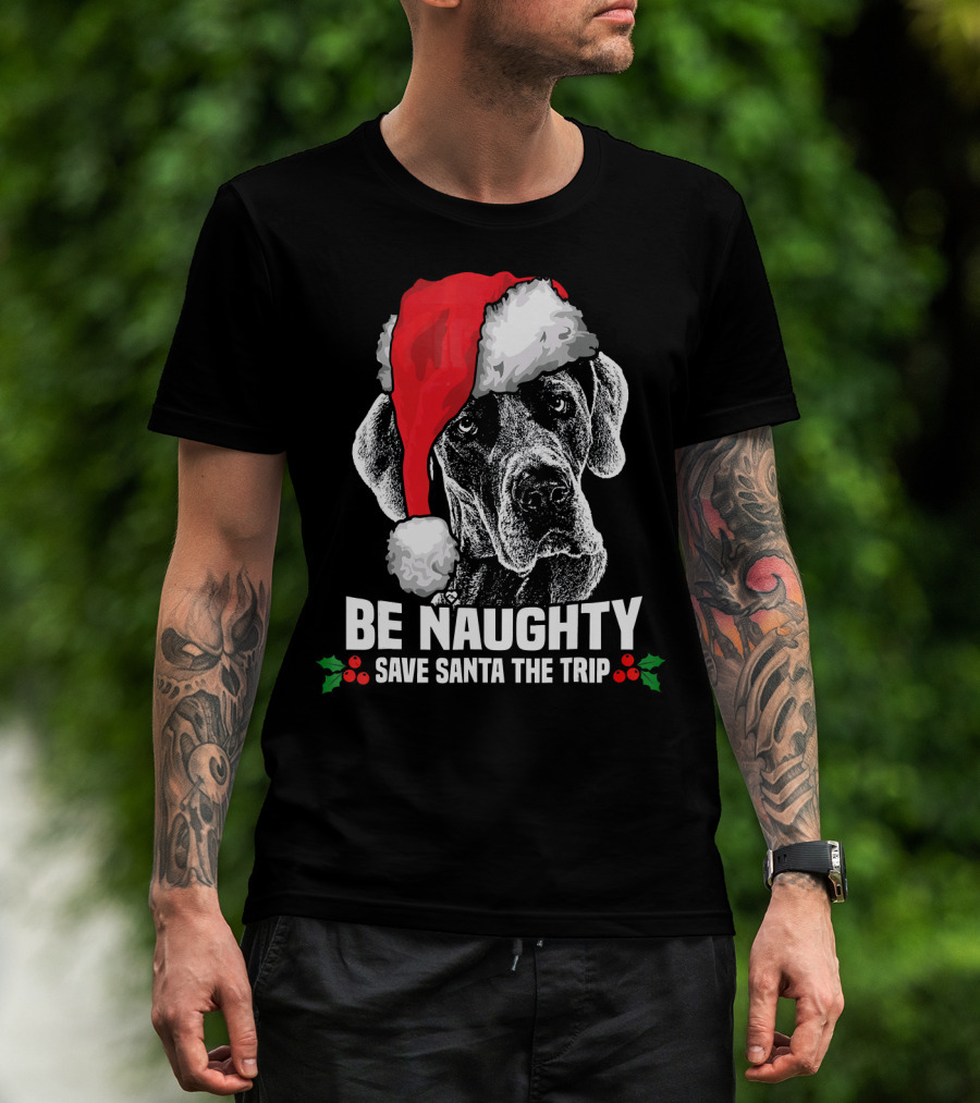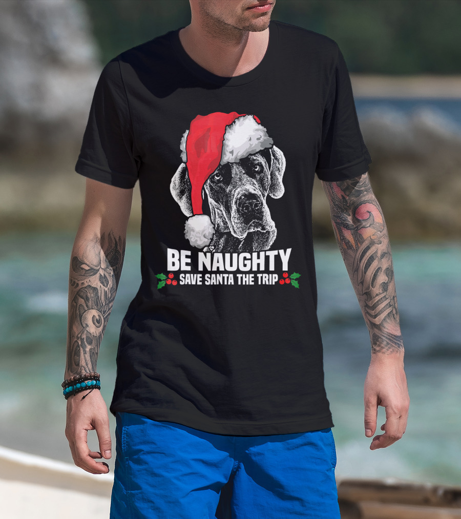 Be Naughty Save Santa The Trip Great Dane Santa Hat T-Shirt