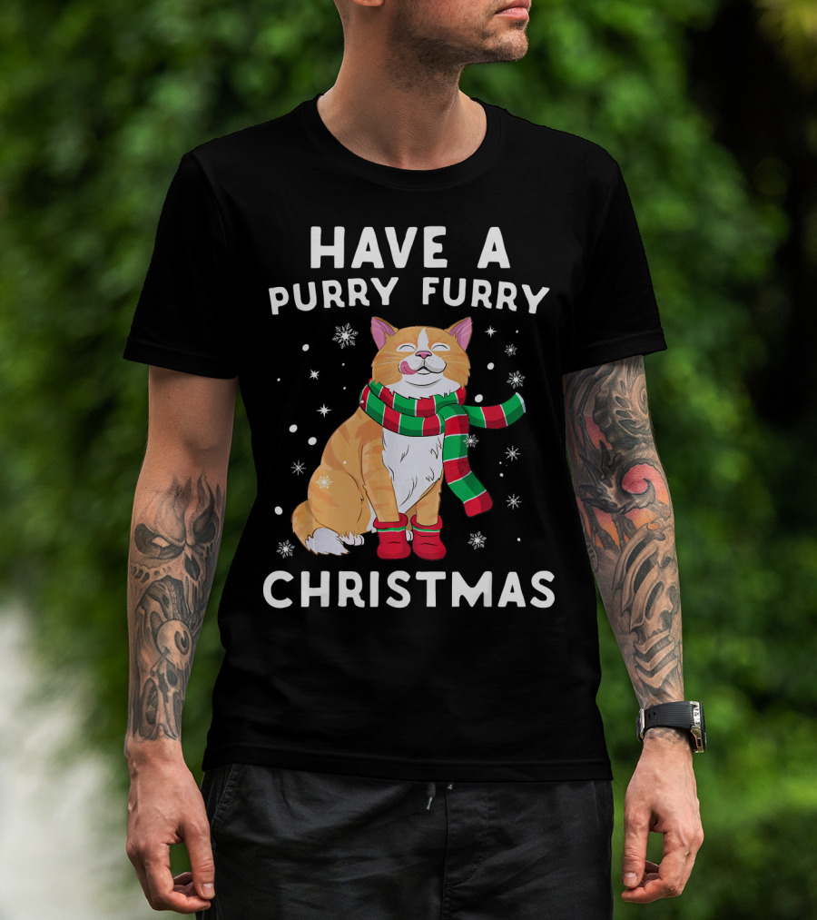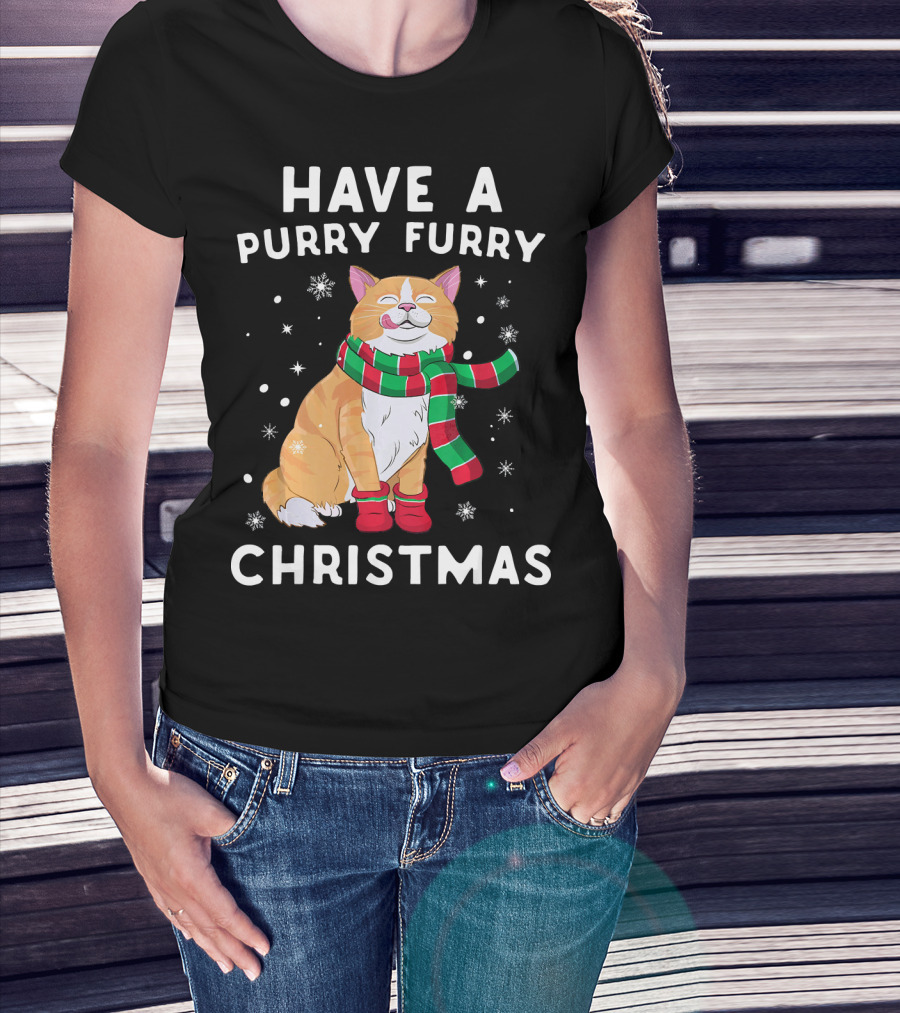 Have A Purry Furry Christmas Snowflakes And Cat With Scarf T-Shirt