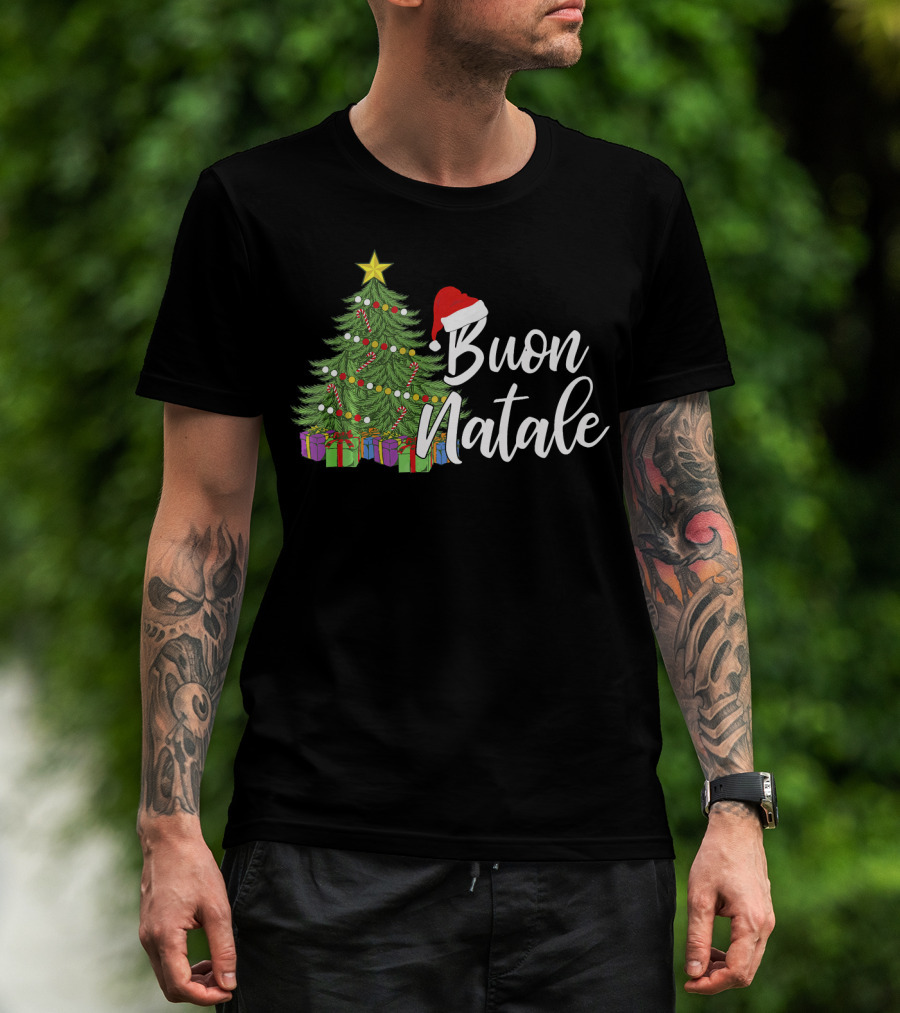 Buon Natale Italian Christmas Tree Santa Hat Tanti Auguri Regalo T-Shirt