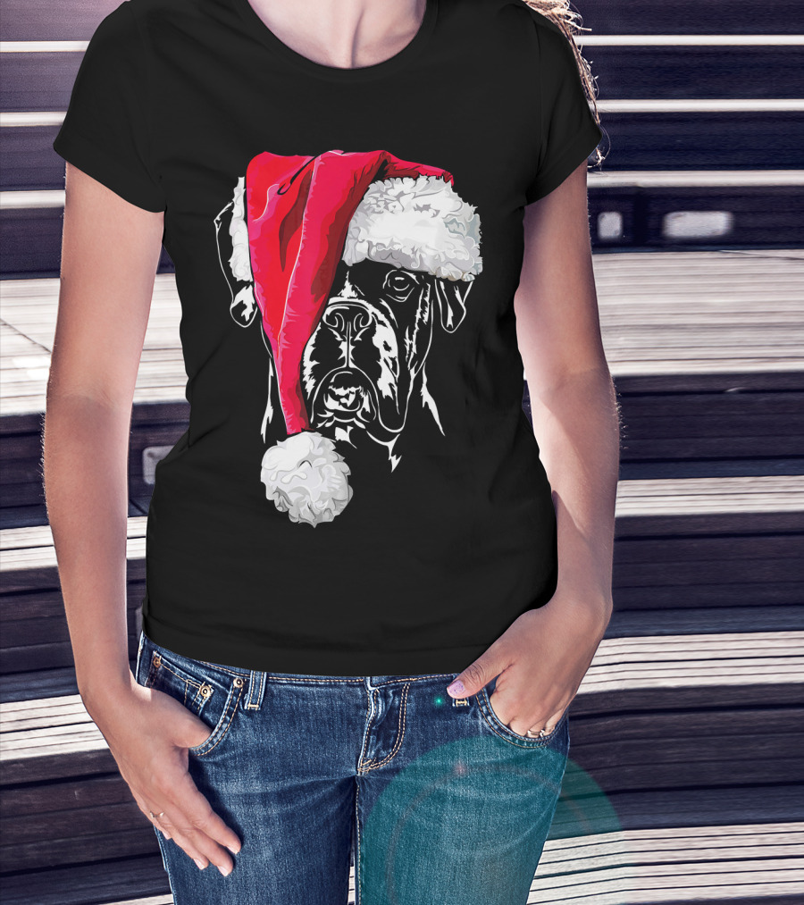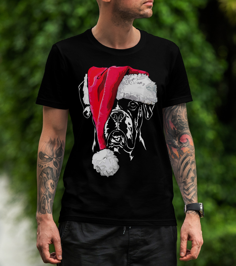 Funny Boxer Dog With Santa Hat Christmas T-Shirt