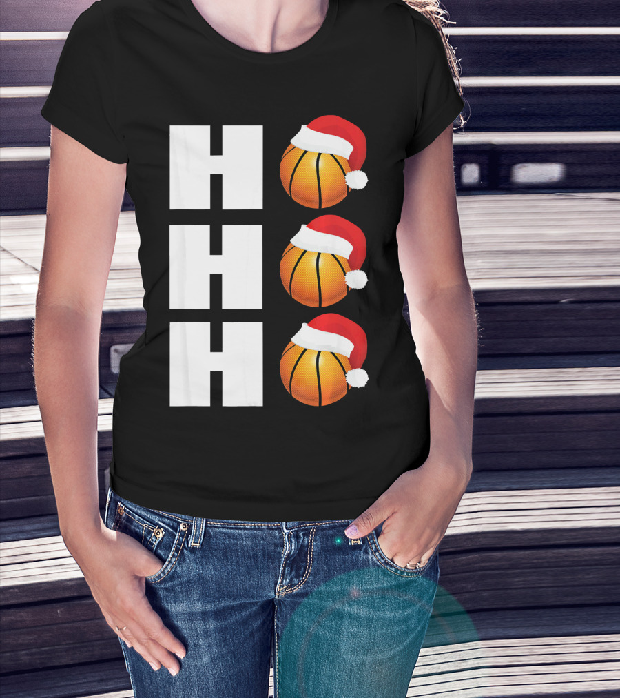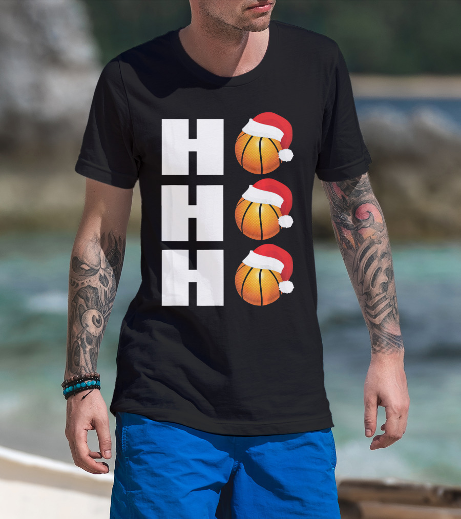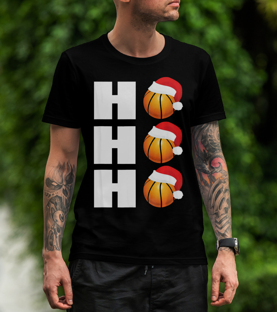 HO HO HO Santa Hat Basketballs Christmas Holiday T-Shirt