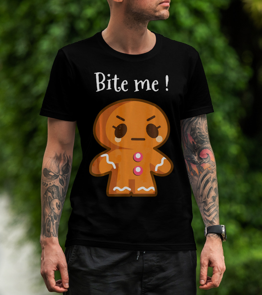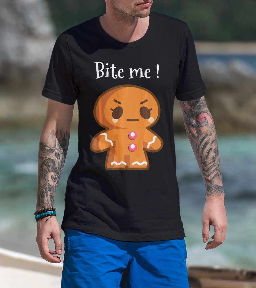 Bite Me Angry Gingerbread Cookie Christmas T-Shirt