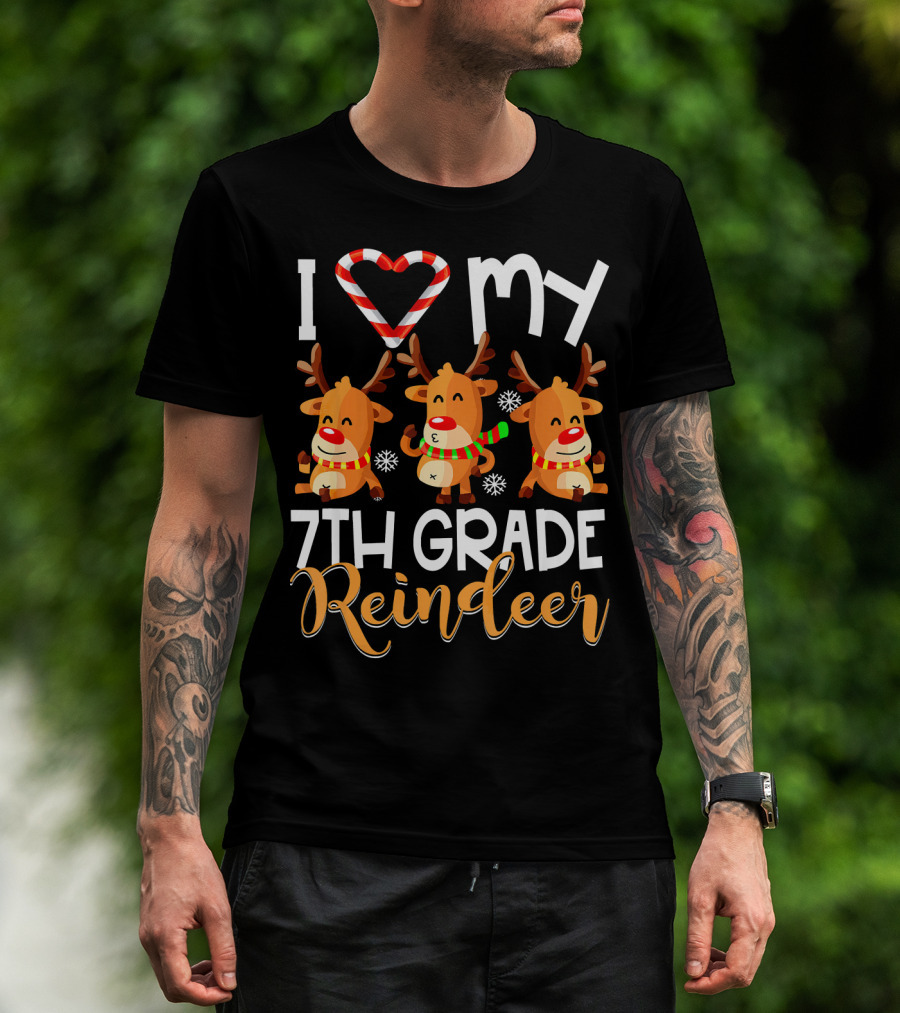 I Love My 7th Grade Reindeer Christmas Candy Cane Snowflakes T-Shirt