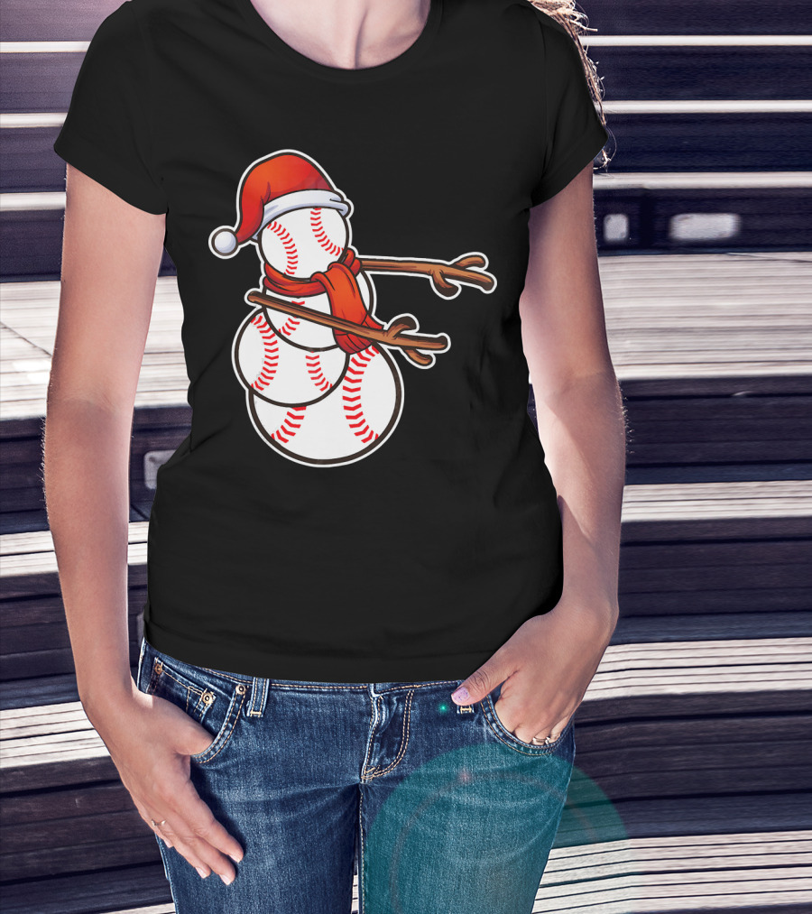 The Santa Hat Snowman Made of Baseballs Flossing T-shirt is designed for everyday wear and a consistent fit. Fabric is pre-shrunk ring-spun cotton with durable stitching. See the size chart below for exact measurements.