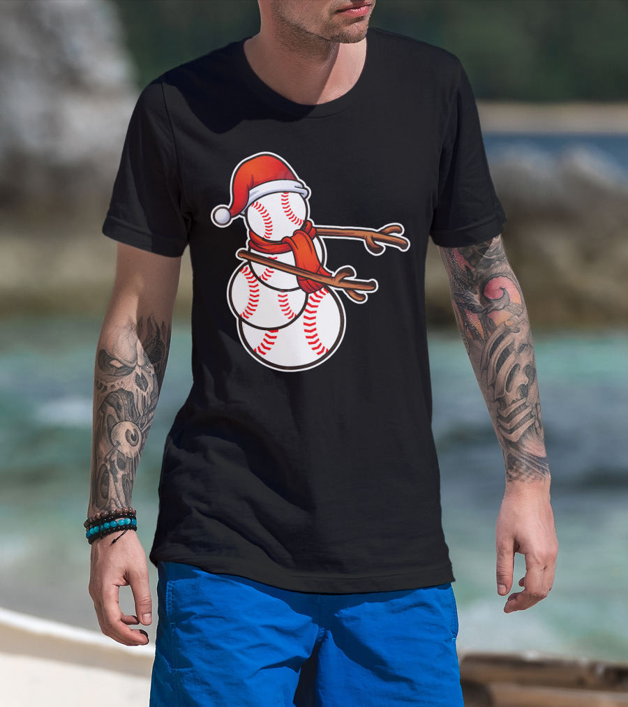 Santa Hat Snowman Made Of Baseballs Flossing T-Shirt