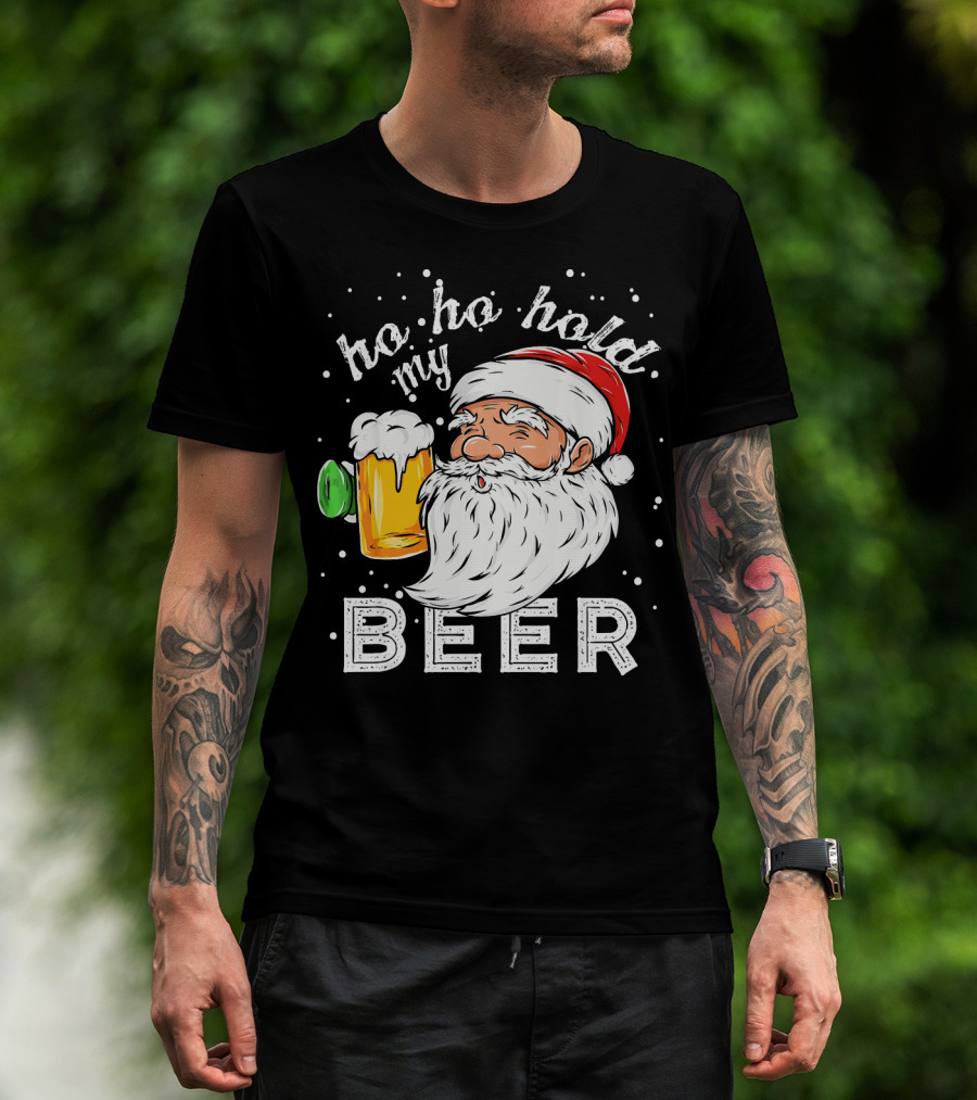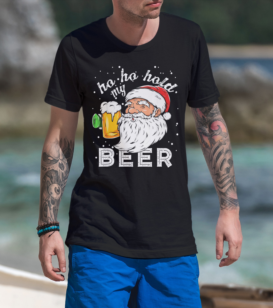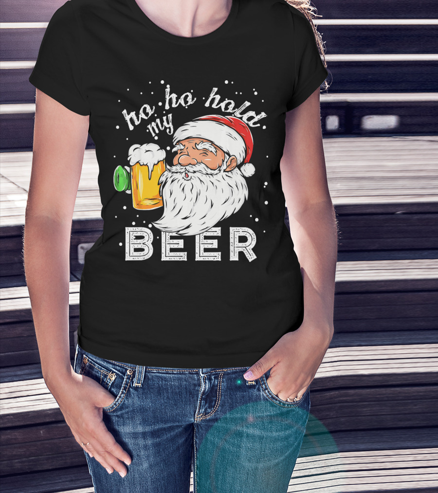 Ho Ho Hold My Beer Santa Christmas Drinking T-Shirt