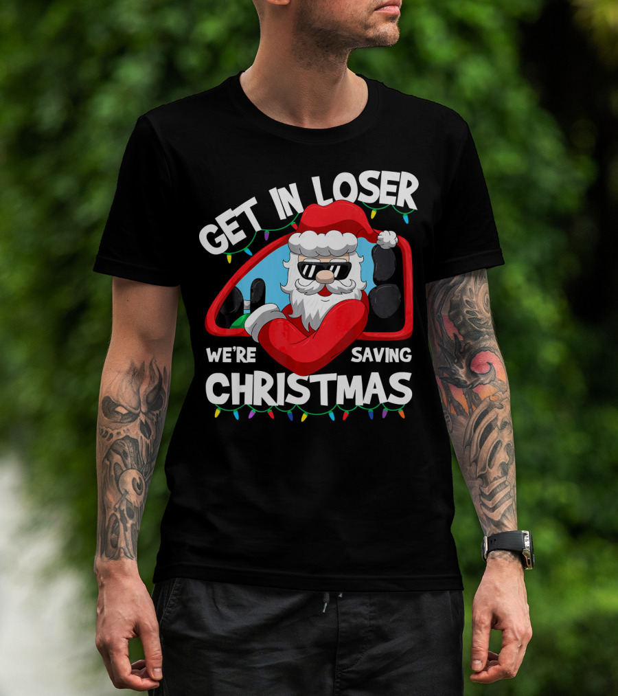 GET IN LOSER WE'RE SAVING CHRISTMAS SANTA IN CAR WITH LIGHTS T-Shirt