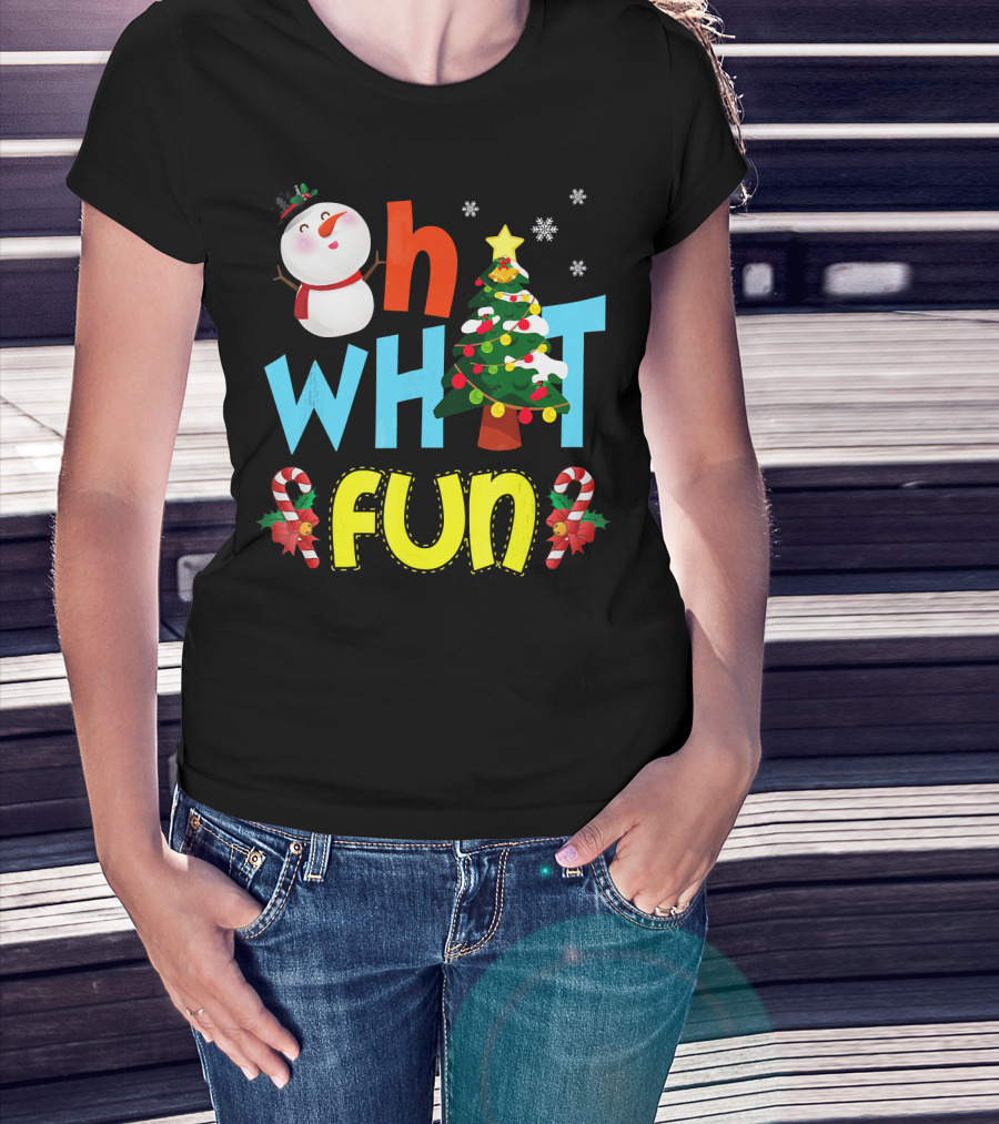 Oh What Fun Christmas Tree Snowman Candy Canes T-Shirt