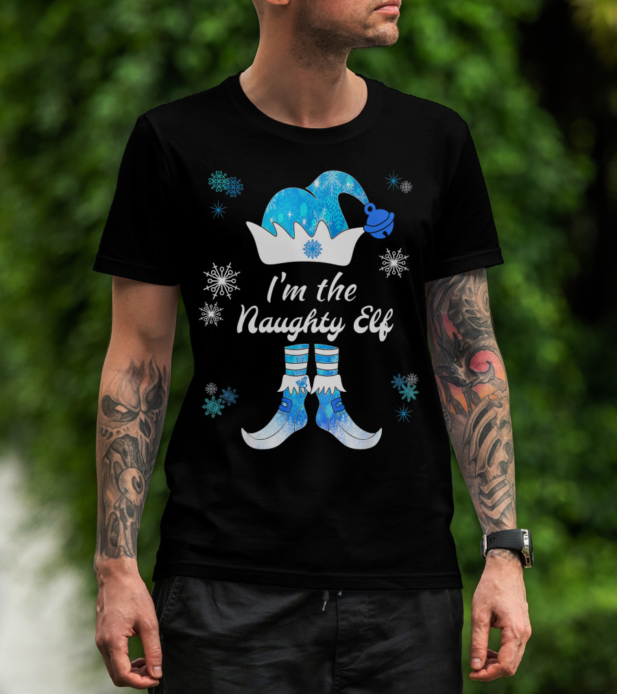 I'm The Naughty Elf With Snowflakes Festive Hat And Boots T-Shirt