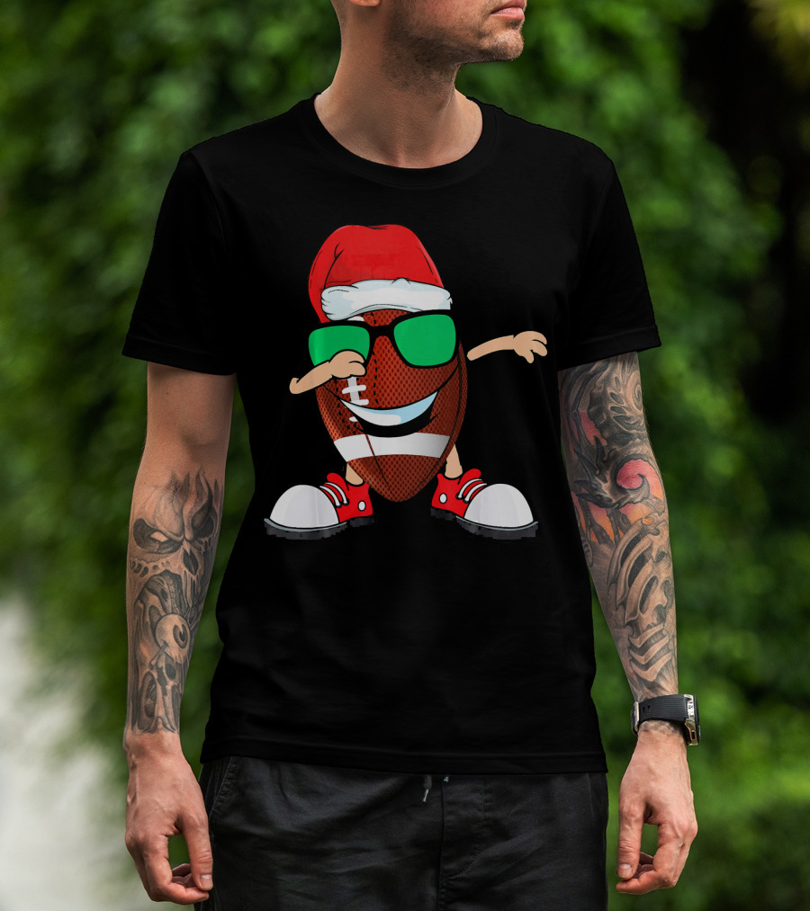 Dabbing Football Wearing Santa Hat With Green Sunglasses And Red Sneakers T-Shirt