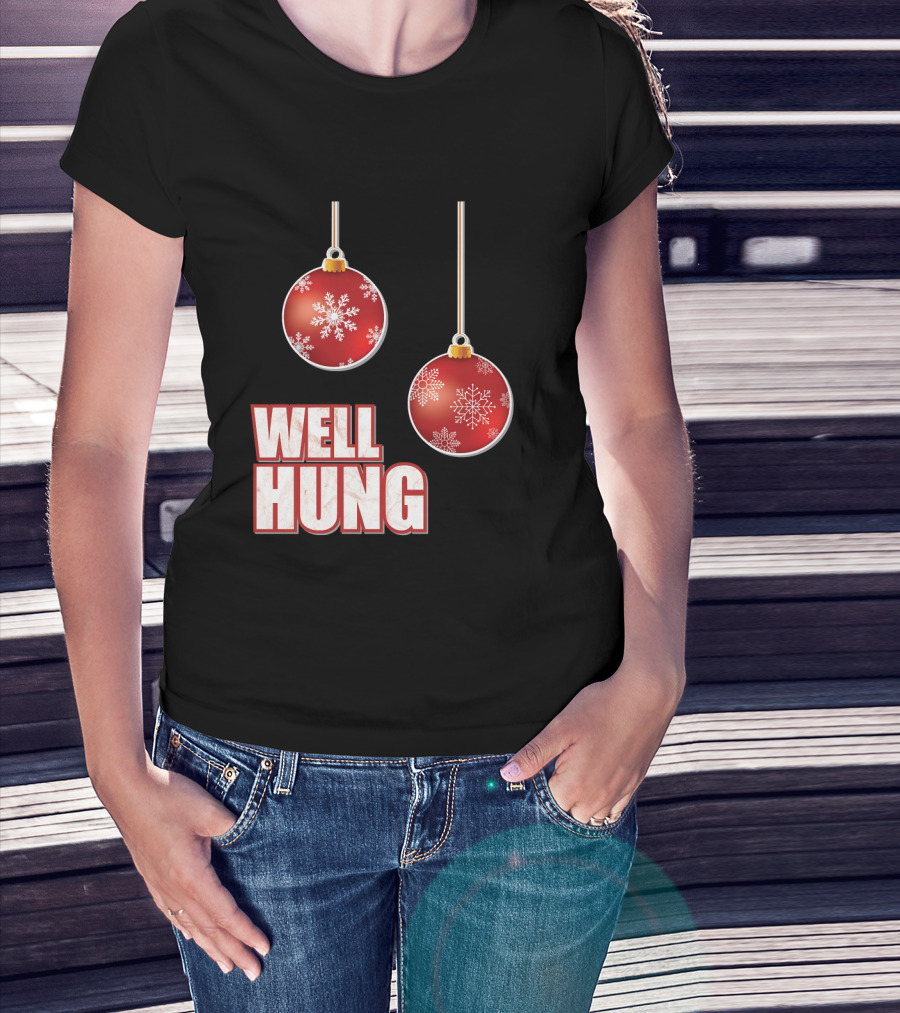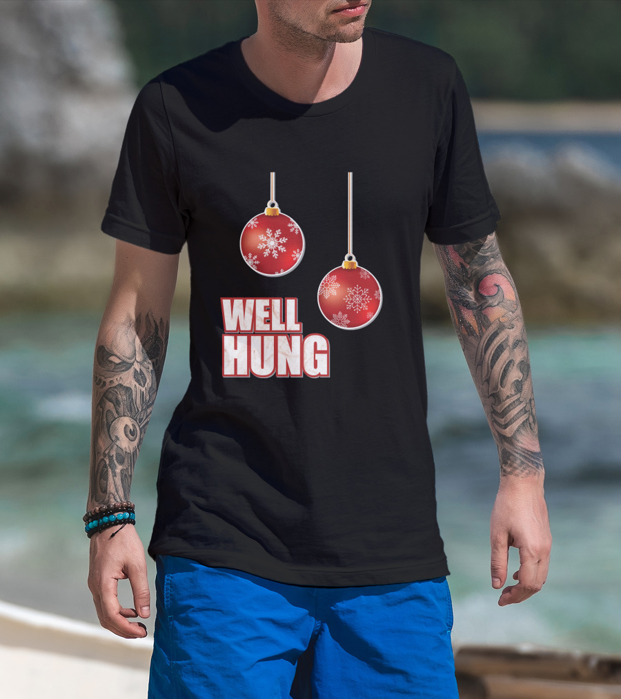Well Hung Funny Christmas Tree Balls Snowflakes T-Shirt
