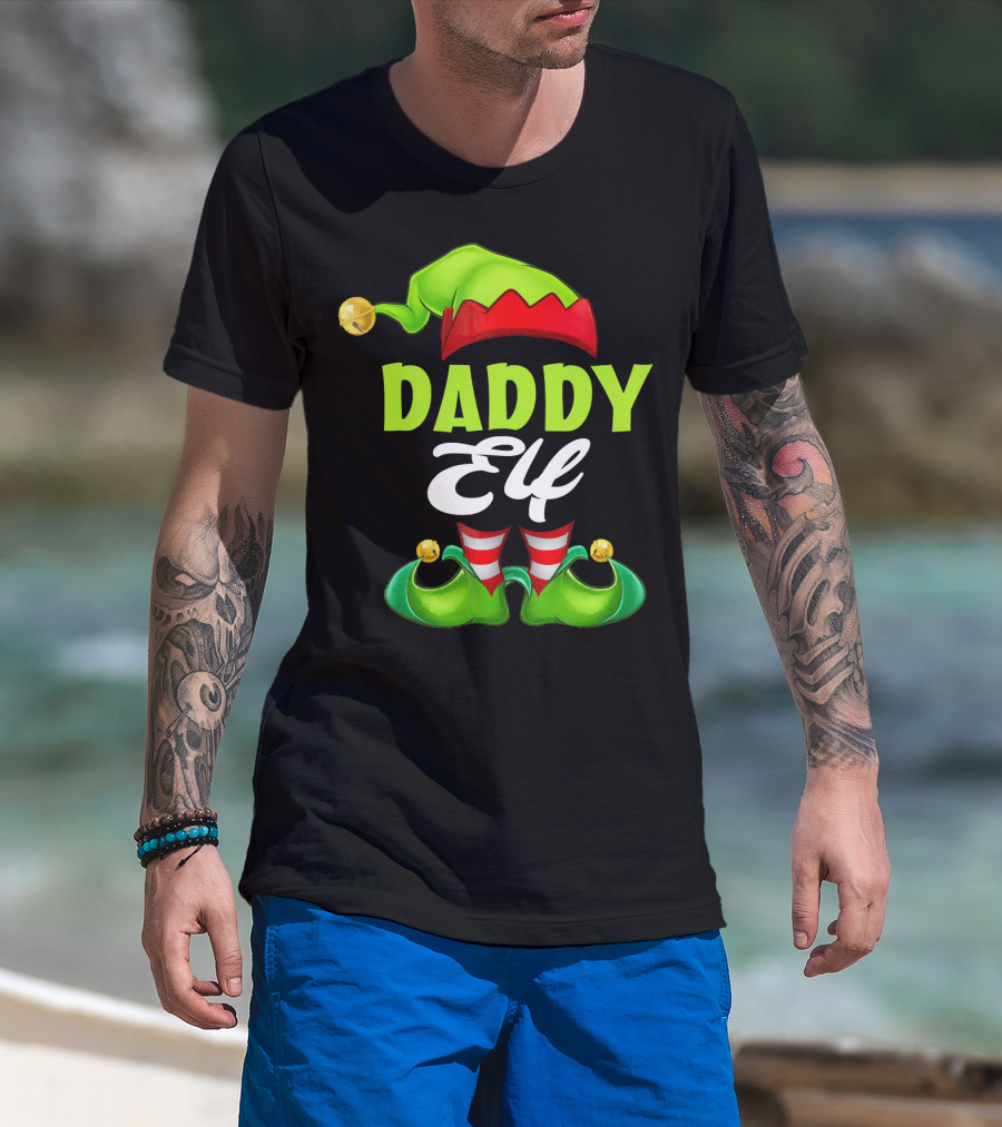Daddy Elf Christmas Hat And Shoes T-Shirt