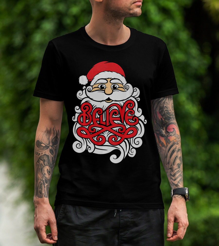 The Believe Santa Christmas X Mas T-shirt is designed for everyday wear and a consistent fit. Fabric is pre-shrunk ring-spun cotton with durable stitching. See the size chart below for exact measurements.