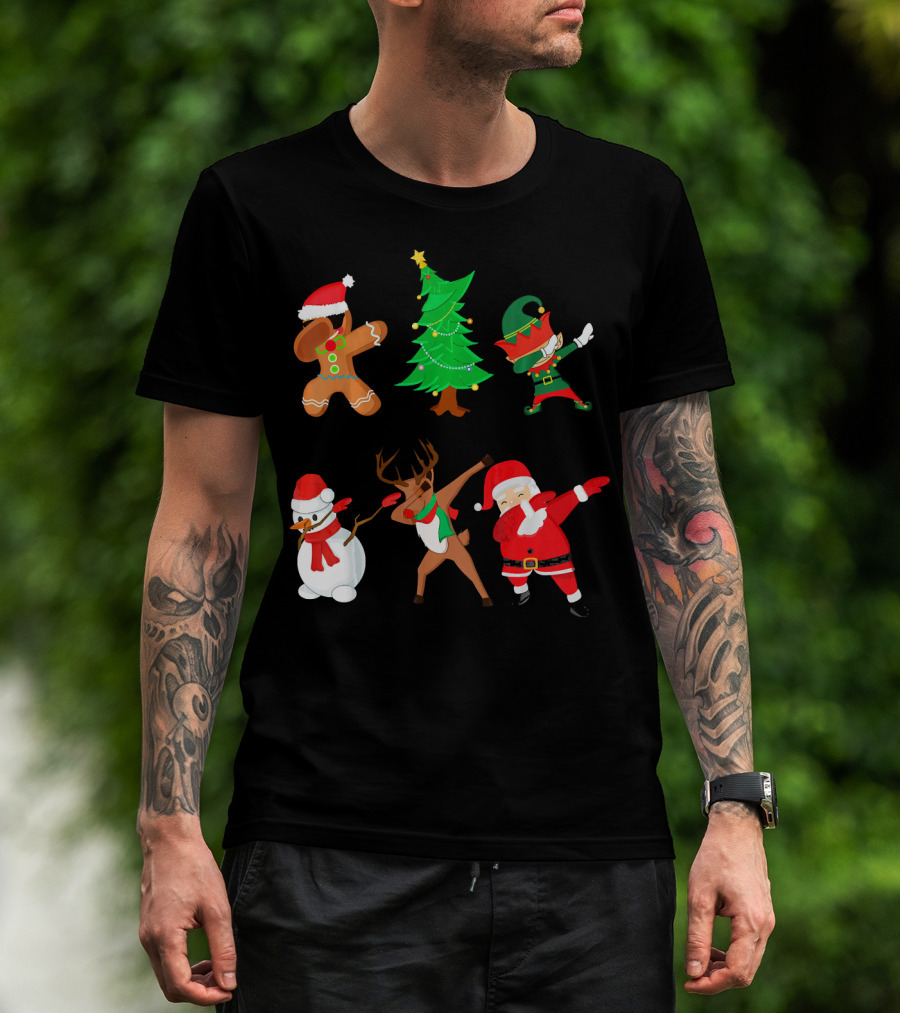 Funny Dabbing Christmas Santa Elf Gingerbread Snowman Reindeer Tree T-Shirt