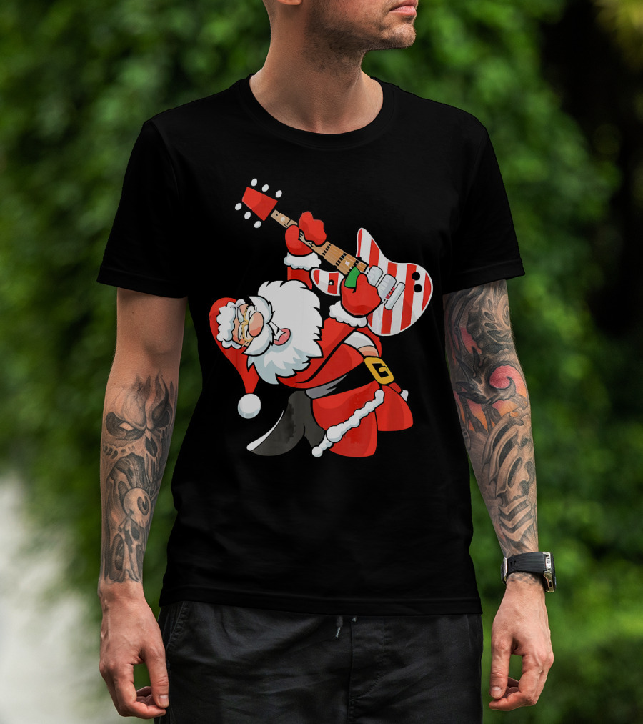 Santa Guitar Player Christmas Music Vintage Rock Holiday T-Shirt