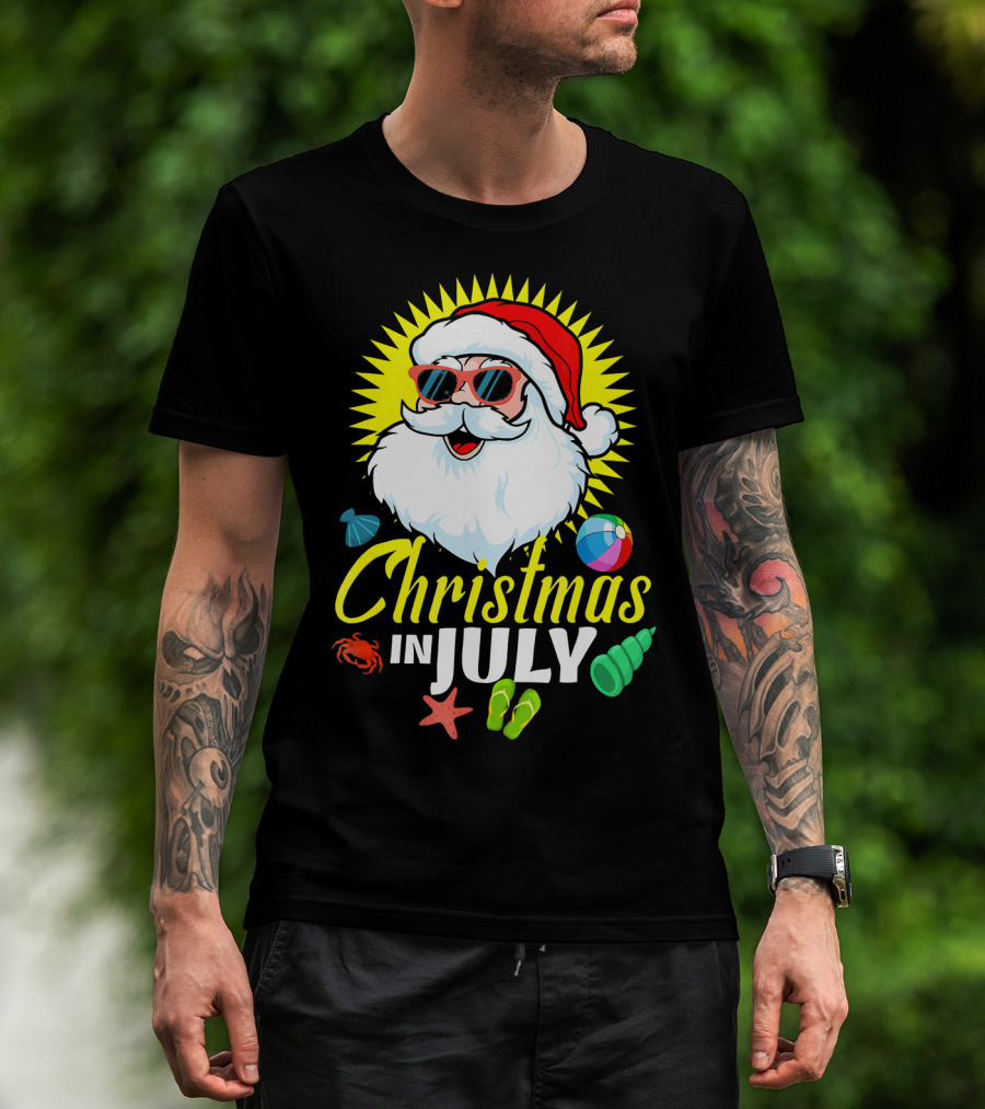 Santa Beach Holiday Christmas In July Fun T-Shirt