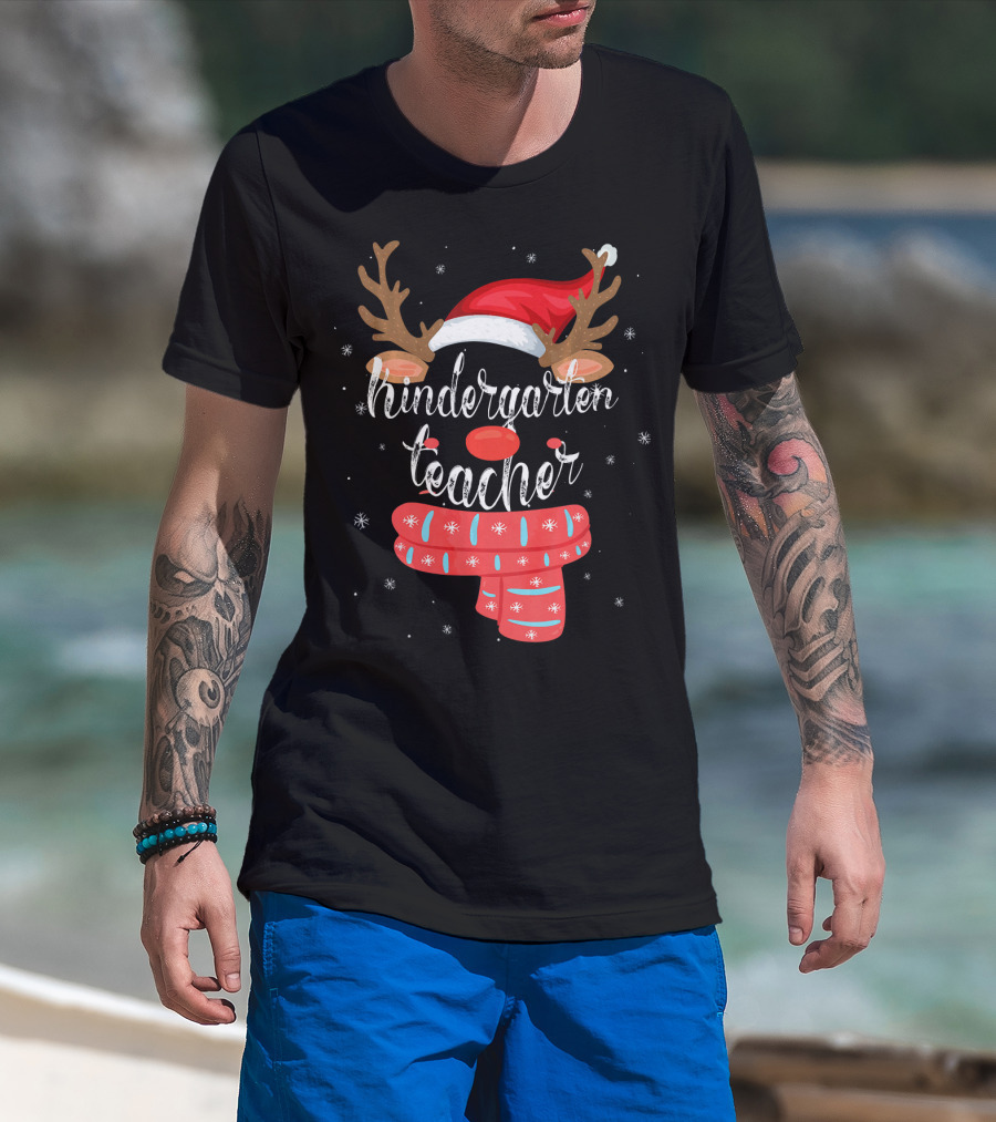Kindergarten Teacher Reindeer Christmas Squad Matching T-Shirt