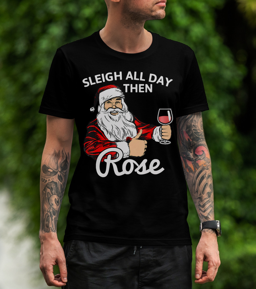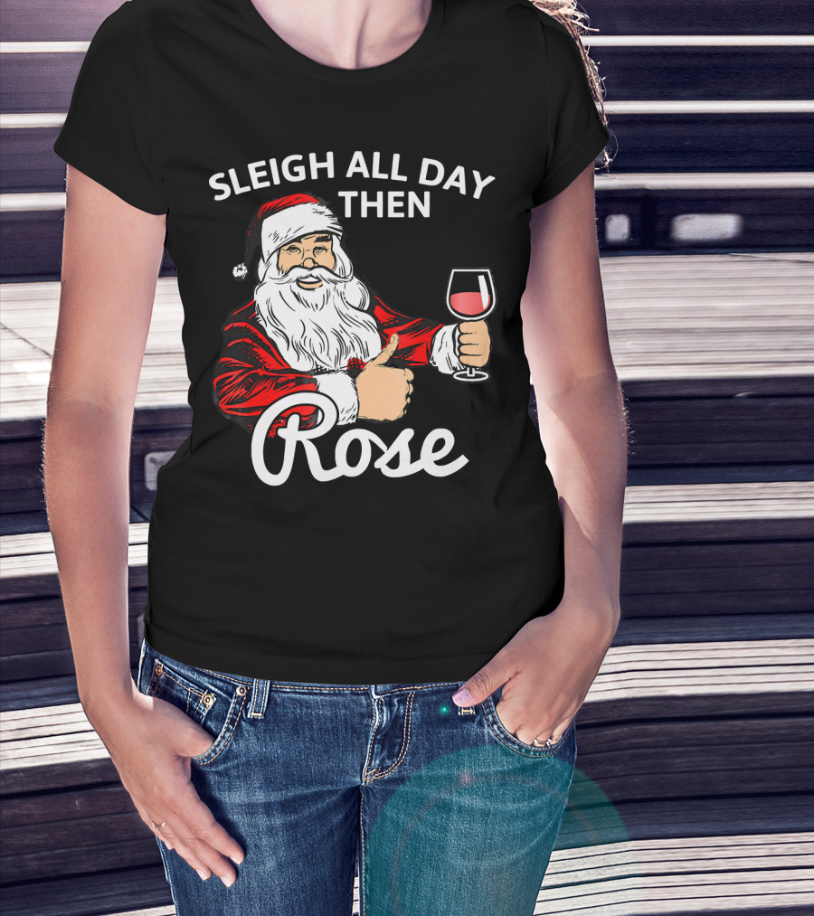 Sleigh All Day Then Rose Santa Holding Wine Glass T-Shirt