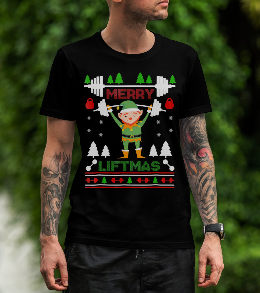 Merry Liftmas Elf Weightlifting Christmas Ugly T-Shirt
