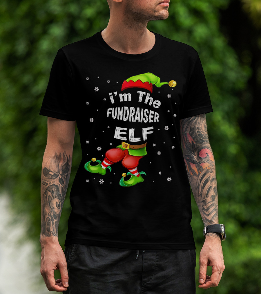 I'm The Fundraiser Elf Jingle Bell Hat Christmas Snowflakes T-Shirt