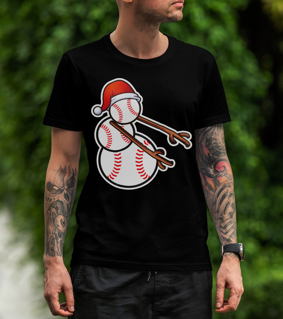 Flossing Snowman Baseballs Santa Hat T-Shirt