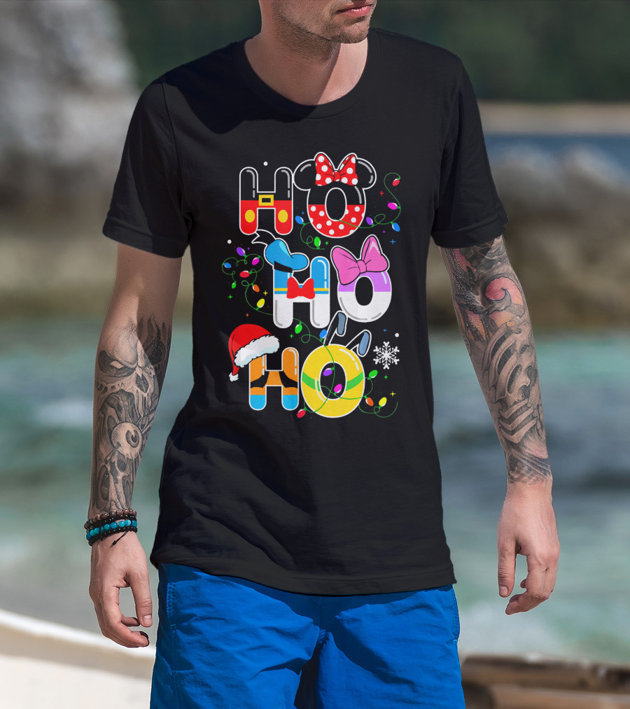 Ho Ho Ho Christmas Disney Characters Lights Decor T-Shirt