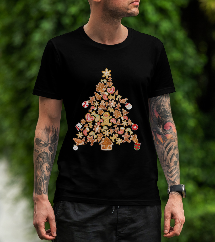 Gingerbread Man Christmas Tree Cookies With Candy Canes And Snowflakes T-Shirt
