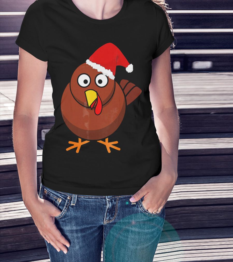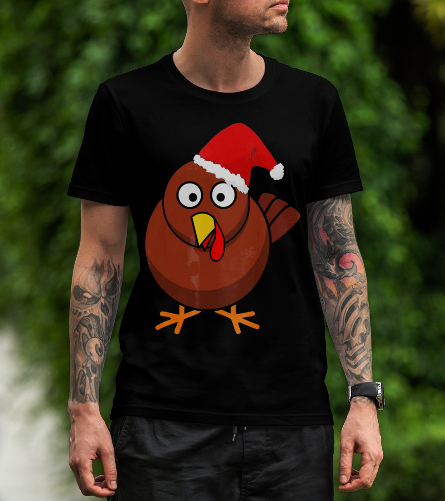 Funny Turkey Wearing A Santa Hat T-Shirt