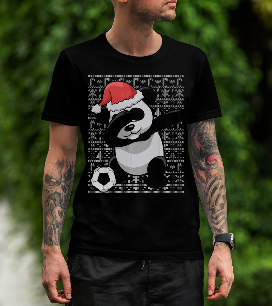 Christmas Dabbing Santa Panda Bear Soccer T-Shirt