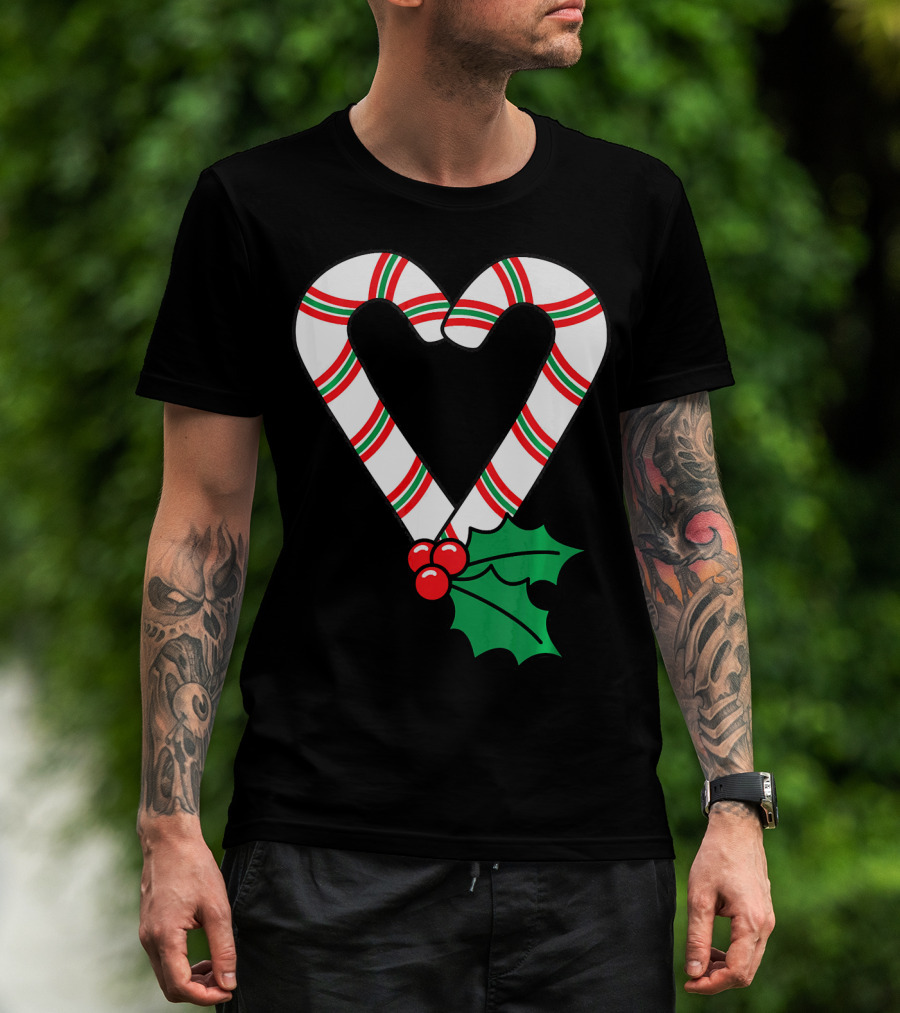 Christmas Candy Cane Heart Holly Berry T-Shirt