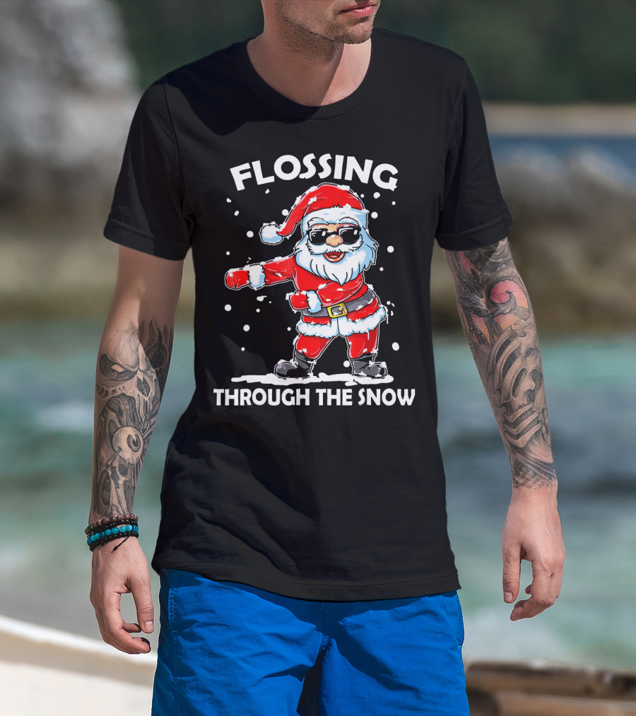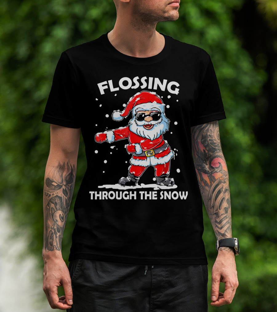 Flossing Through The Snow Santa Sunglasses Floss Dance T-Shirt