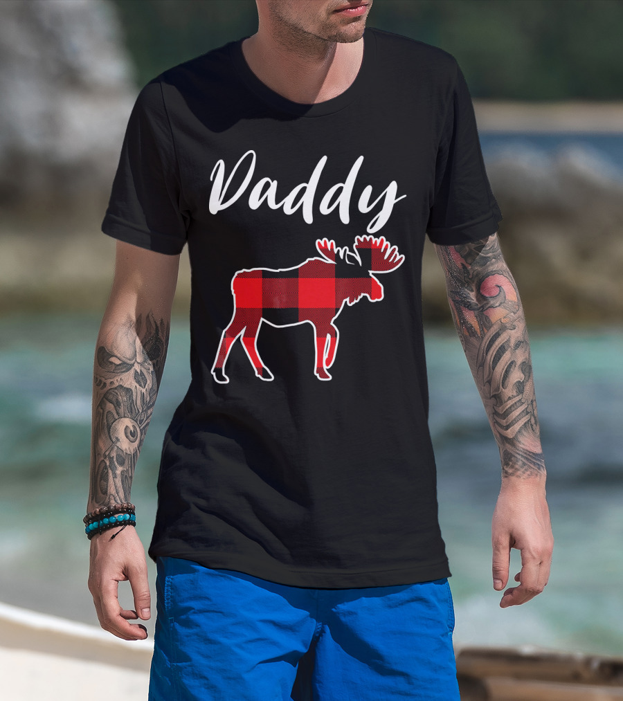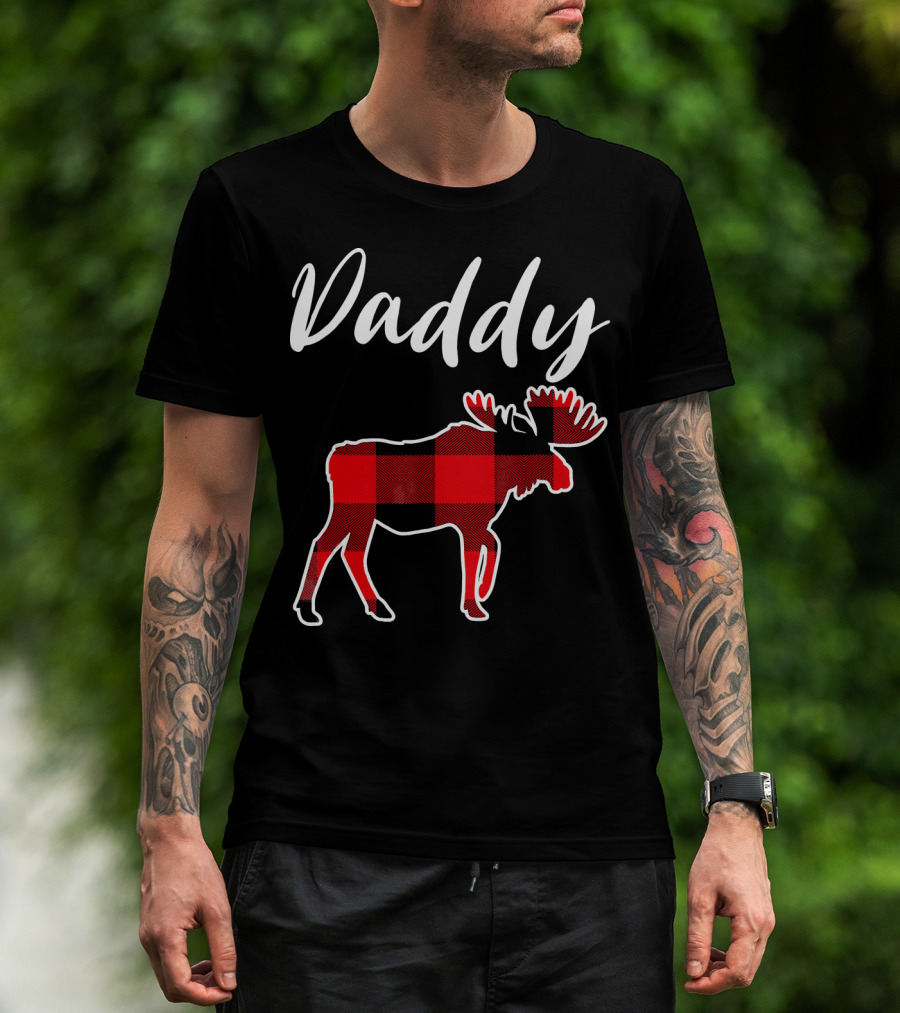 Daddy Buffalo Plaid Christmas Moose Matching T-Shirt