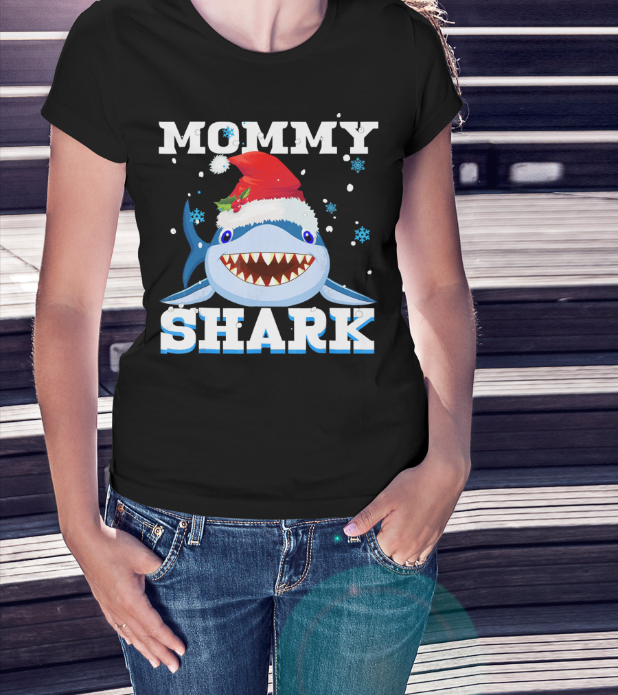The Mommy Shark Santa Hat Christmas Snowflakes T-shirt is designed for everyday wear and a consistent fit. Fabric is pre-shrunk ring-spun cotton with durable stitching. See the size chart below for exact measurements.
